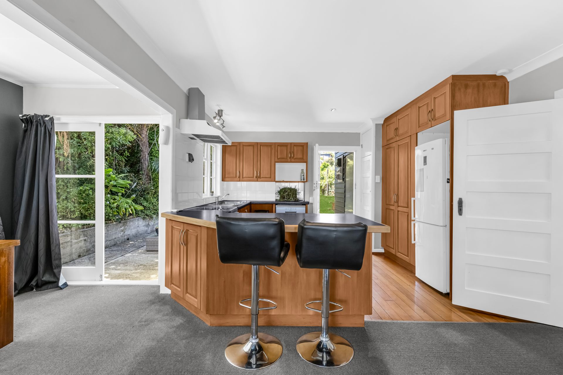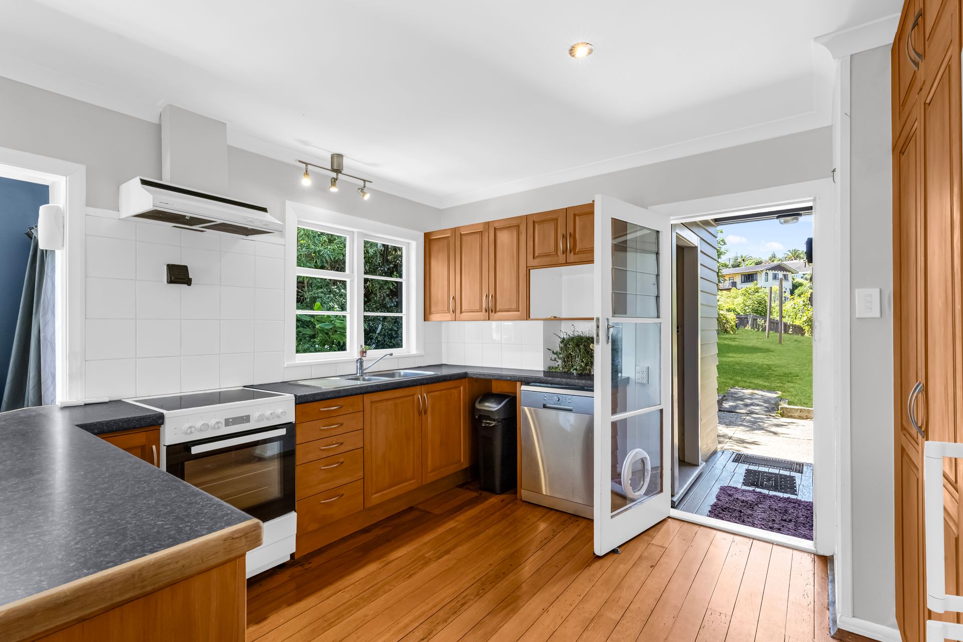 The section offers flexibility for kids, pets and those keen on planting or growing their own produce. Established planting provides privacy and a leafy outlook.