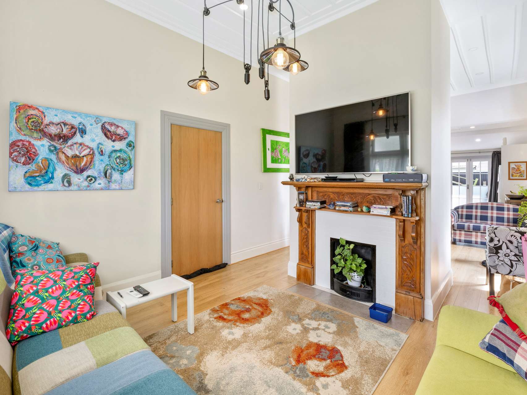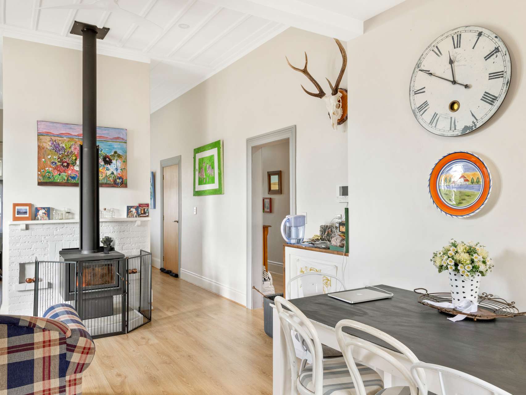 With its battened high ceilings, 2 (ornamental) vintage fireplaces, 3 large bedrooms, a
