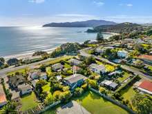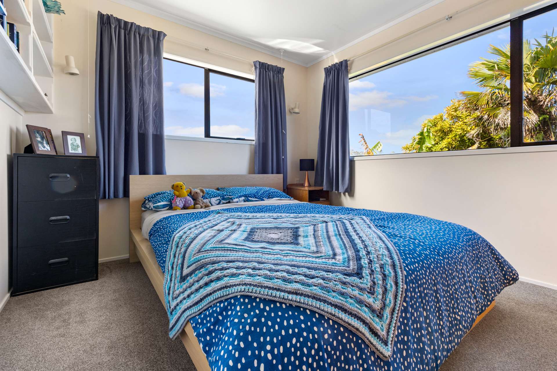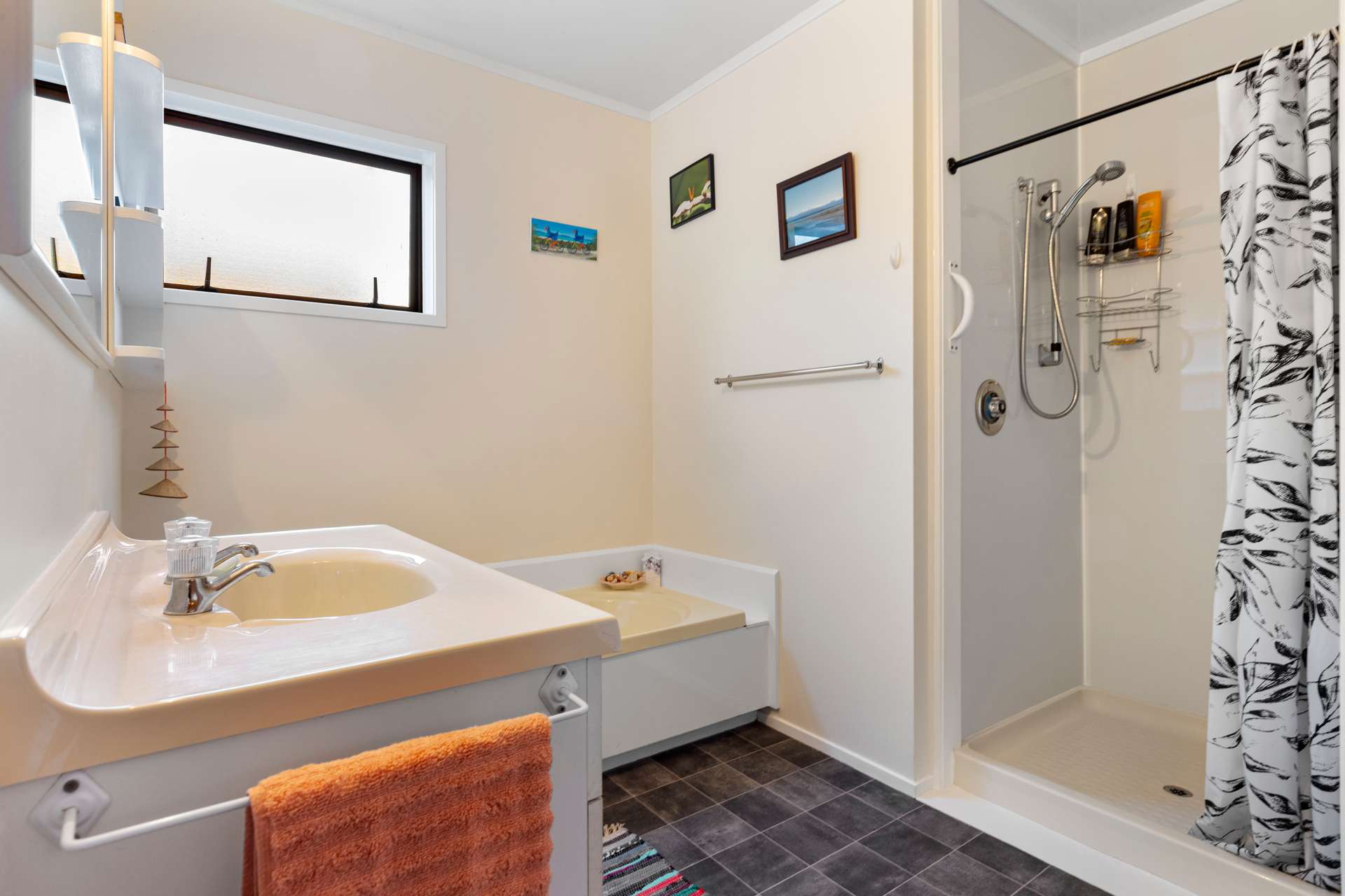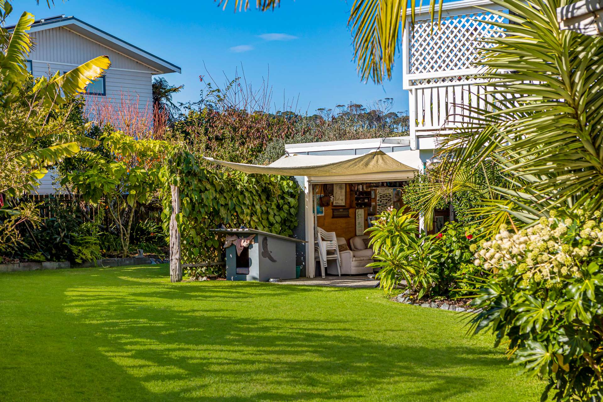 Full-length covered decks on both levels, with upstairs providing water views of Doubtless Bay.