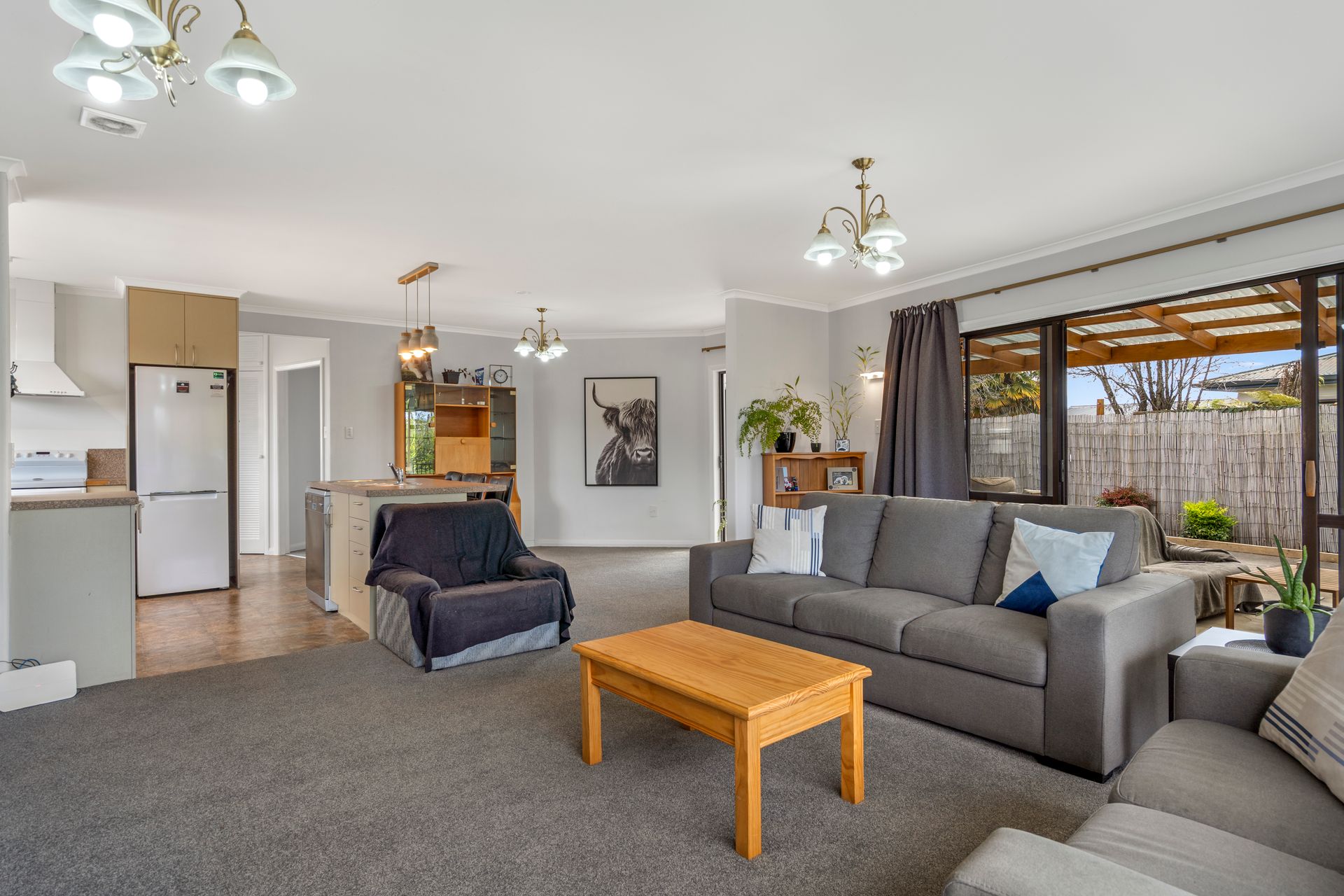 Inside, you’ll find a comfortable open-plan layout with a functional kitchen that connects easily to the dining and lounge area. The generous living space is light-filled and features a log burner with heat transfer system, ensuring warmth throughout the cooler months. From here, sliding doors open to a covered patio — the perfect spot for barbeques or relaxed entertaining year-round.