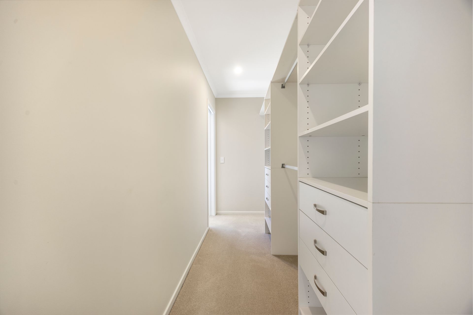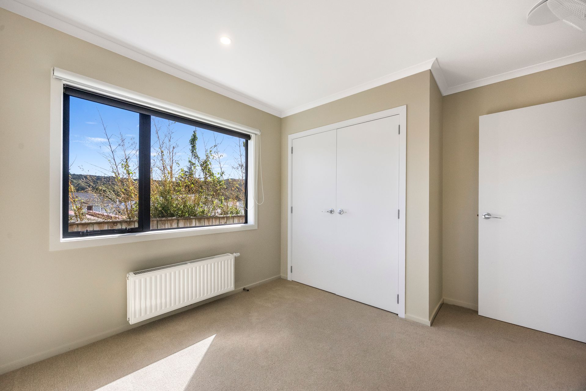 Three bedrooms are arranged down the hallway, giving everyone their own retreat. The main bedroom includes a generous walk-in wardrobe and ensuite, while the remaining bedrooms feature built-in wardrobes and wide windows framing the surrounding neighbourhood and hills. A full family bathroom with both bath and separate shower sits nearby, along with a separate WC that keeps busy mornings running smoothly.