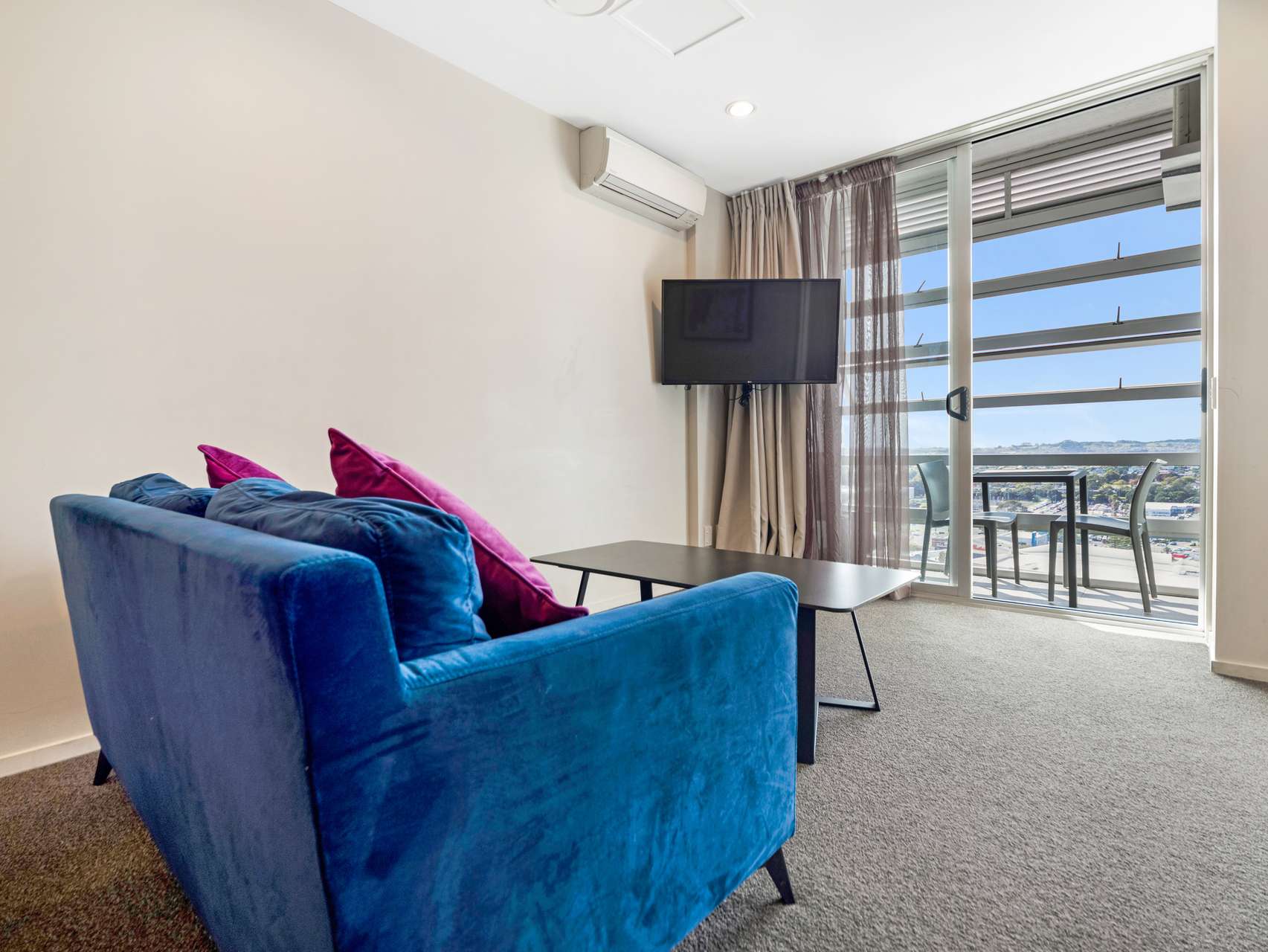 Inside you’ll find a light-filled open plan living space with a nicely designed kitchen featuring everything you need – stylish cabinetry, and room for all the essentials. The living area flows seamlessly out to an enclosed deck, offering an extra space to relax, unwind, or entertain with city views in the background.