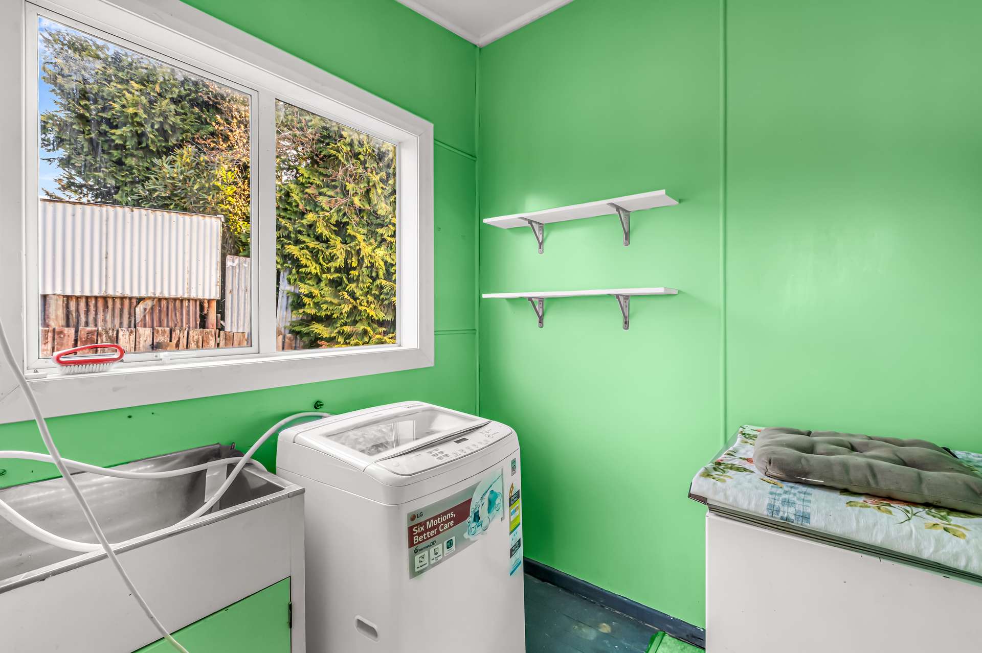 living spaces, three bedrooms, a sunny kitchen and separate laundry and a