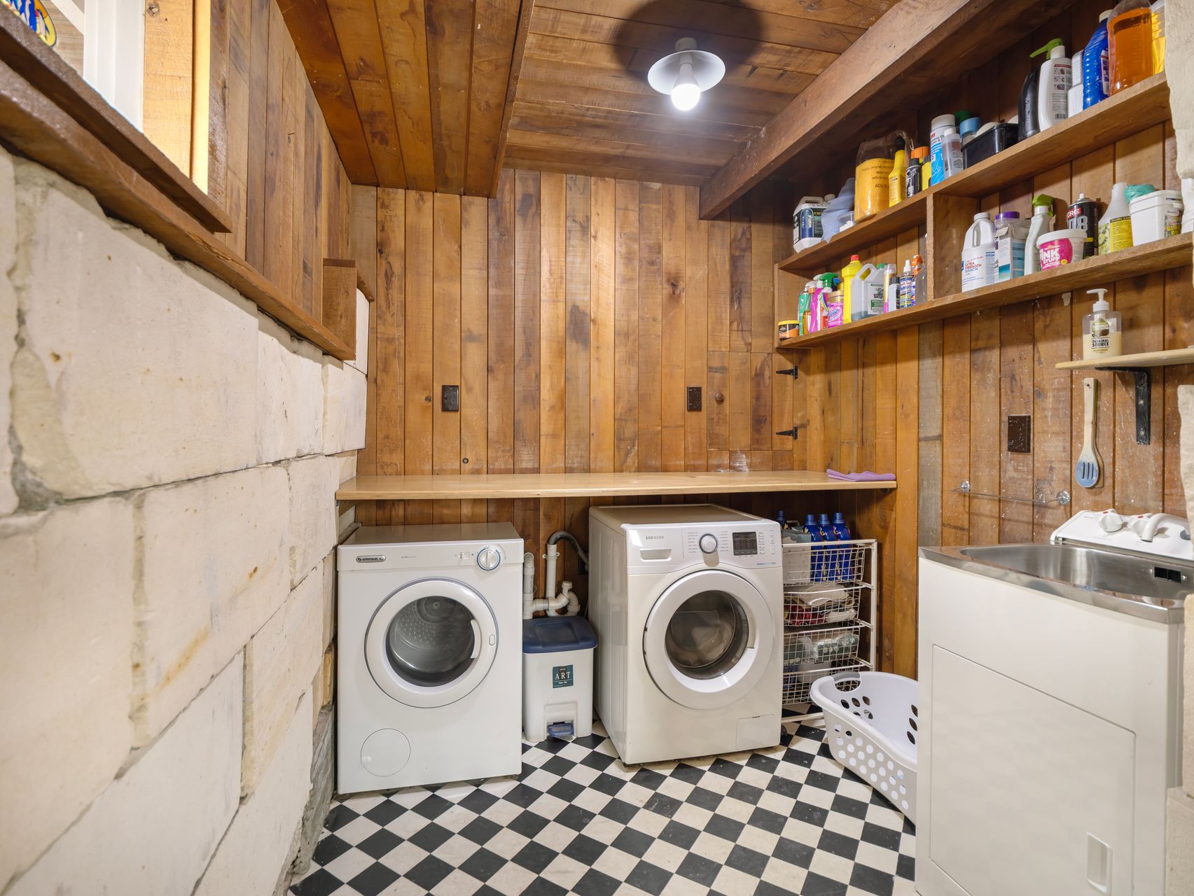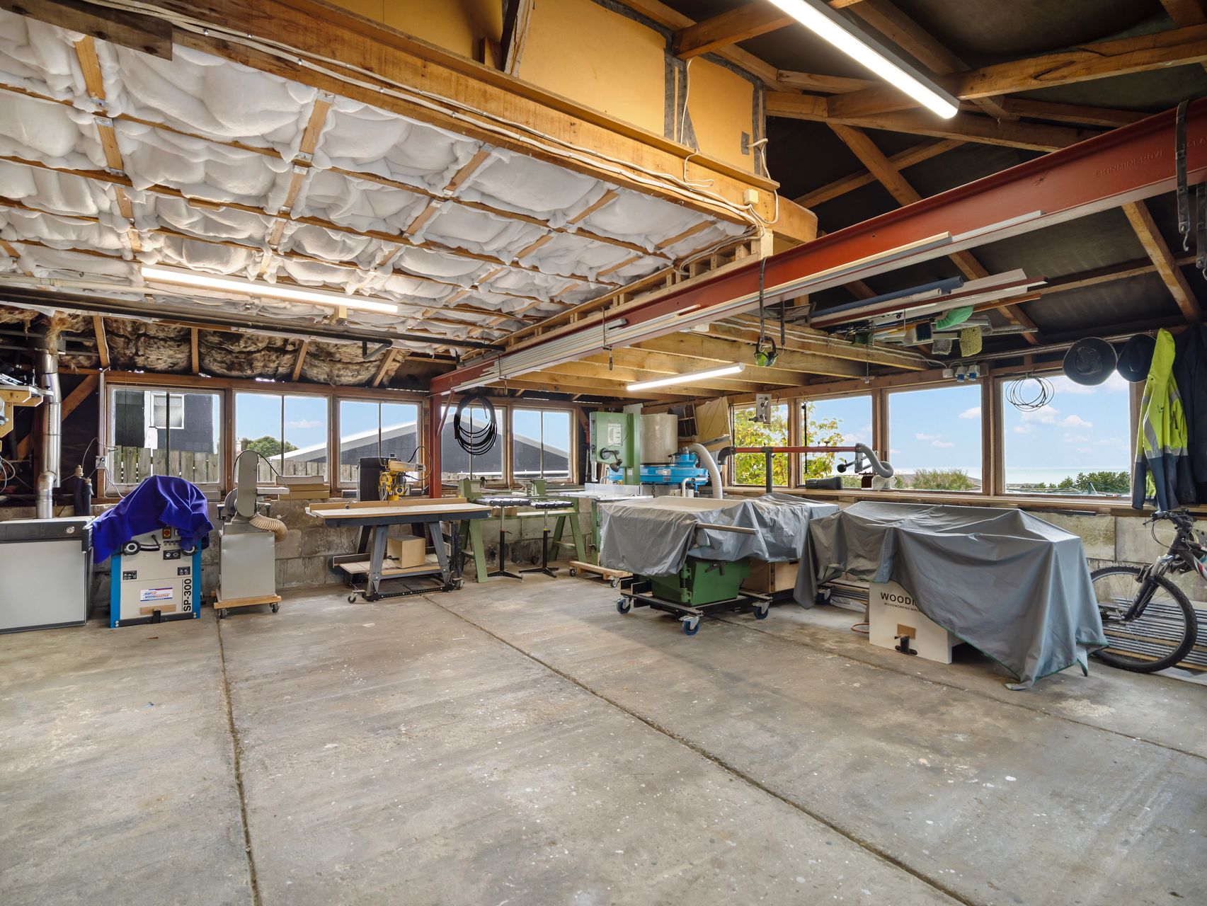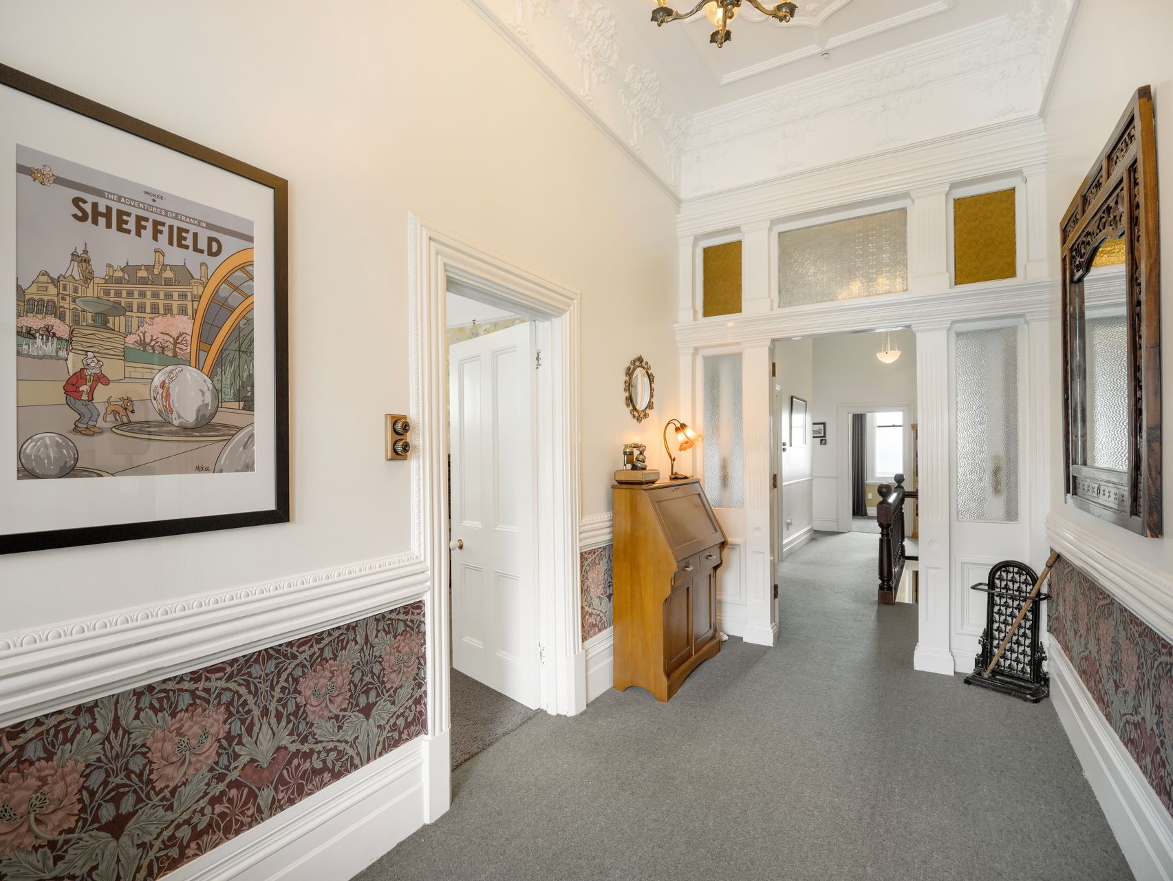 Accommodation is well balanced for family life, guests, or working from home. Five bedrooms sit on the main level, including several particularly generous rooms with original fireplaces and period detailing, with an office and second bathroom downstairs. Upstairs, the main bathroom includes both a bath and separate shower, with a separate WC. Downstairs there is a huge utility zone incorporating laundry, workshop areas, storage and a huge garage that will speak directly to anyone who likes having room for projects, bikes, tools or extra gear.