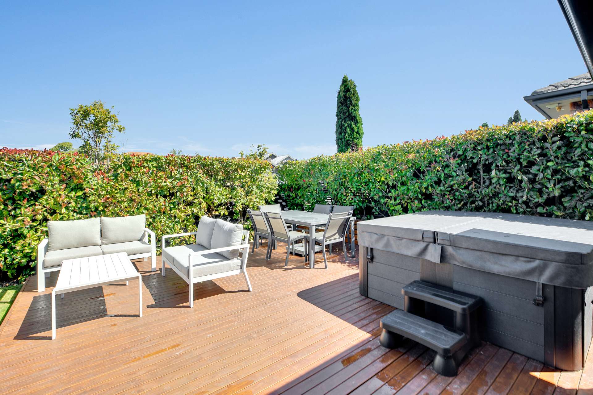 You’ll love the warm and inviting open plan living area, with its beautiful light colour scheme, abundance of sunlight and cosy and comfortable spaces. It flows seamlessly out to a sunny patio and fabulous private deck, where you can enjoy summer BBQ’s and entertain family and friends in style. With a separate lounge, that can be closed off, there's plenty of space for the family to spread out and relax.