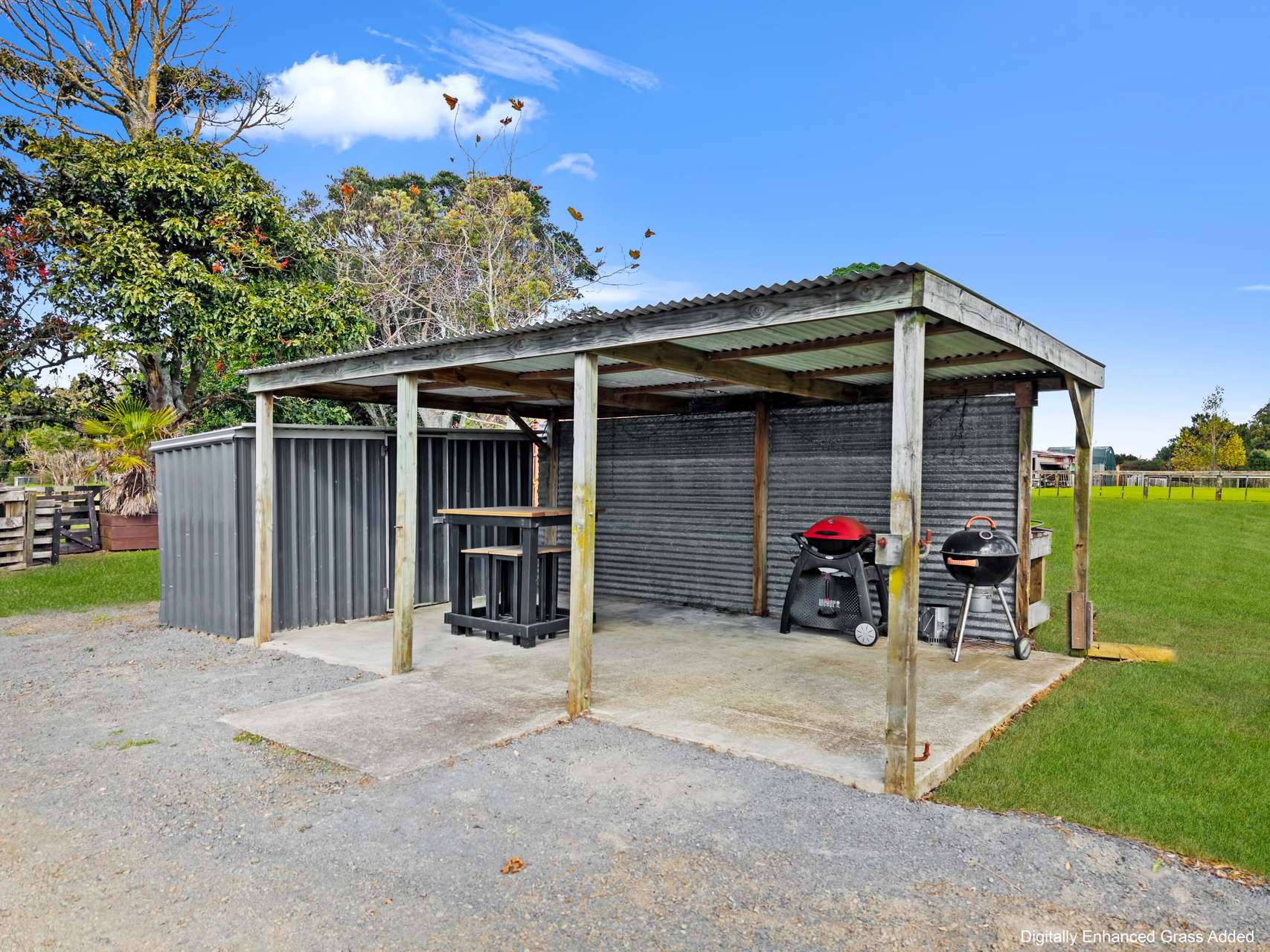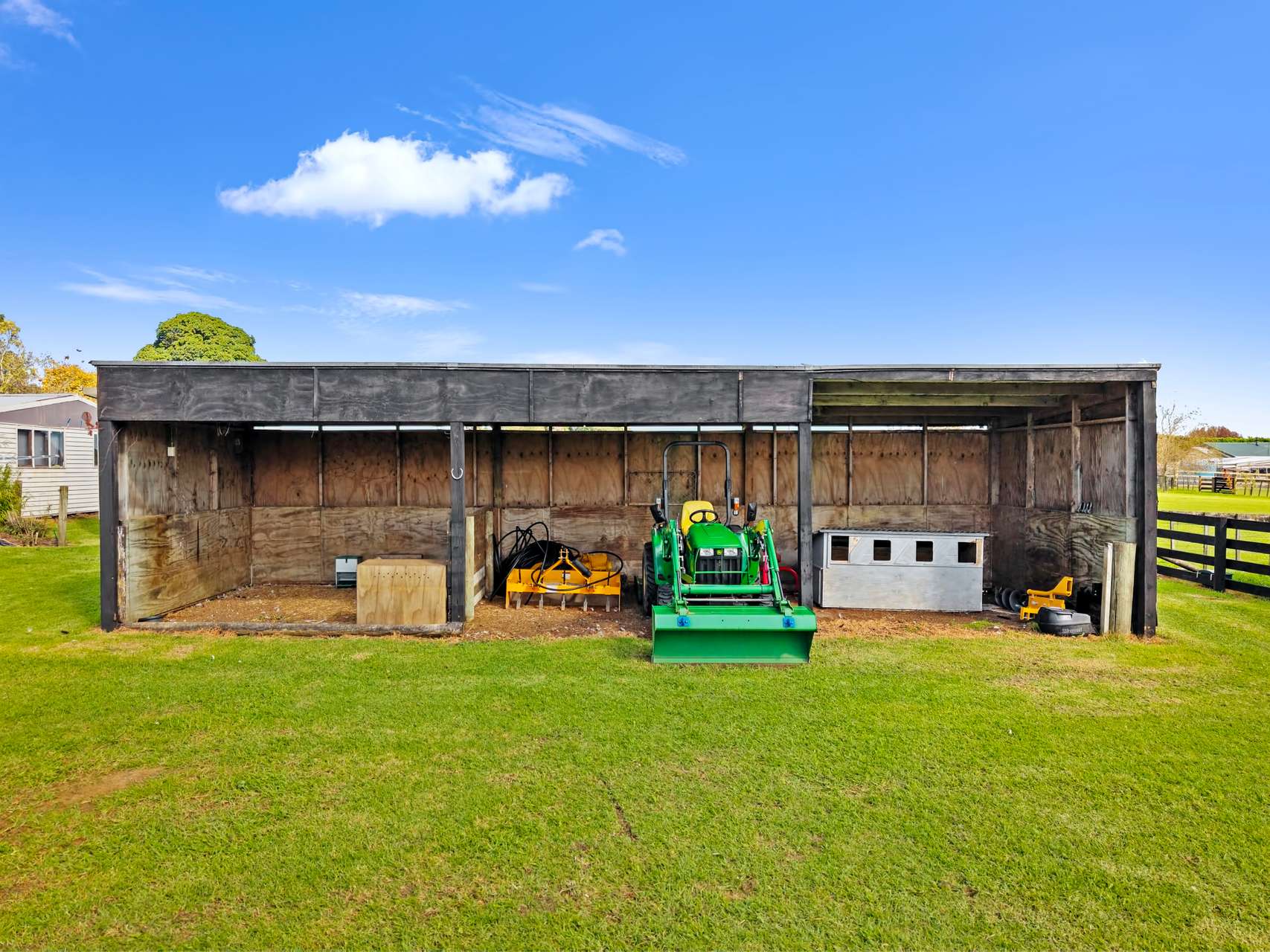 Outside, the three bay pole shed offers storage space for equipment, tools, and hay, while an additional single bay shed is currently used for outdoor entertaining.