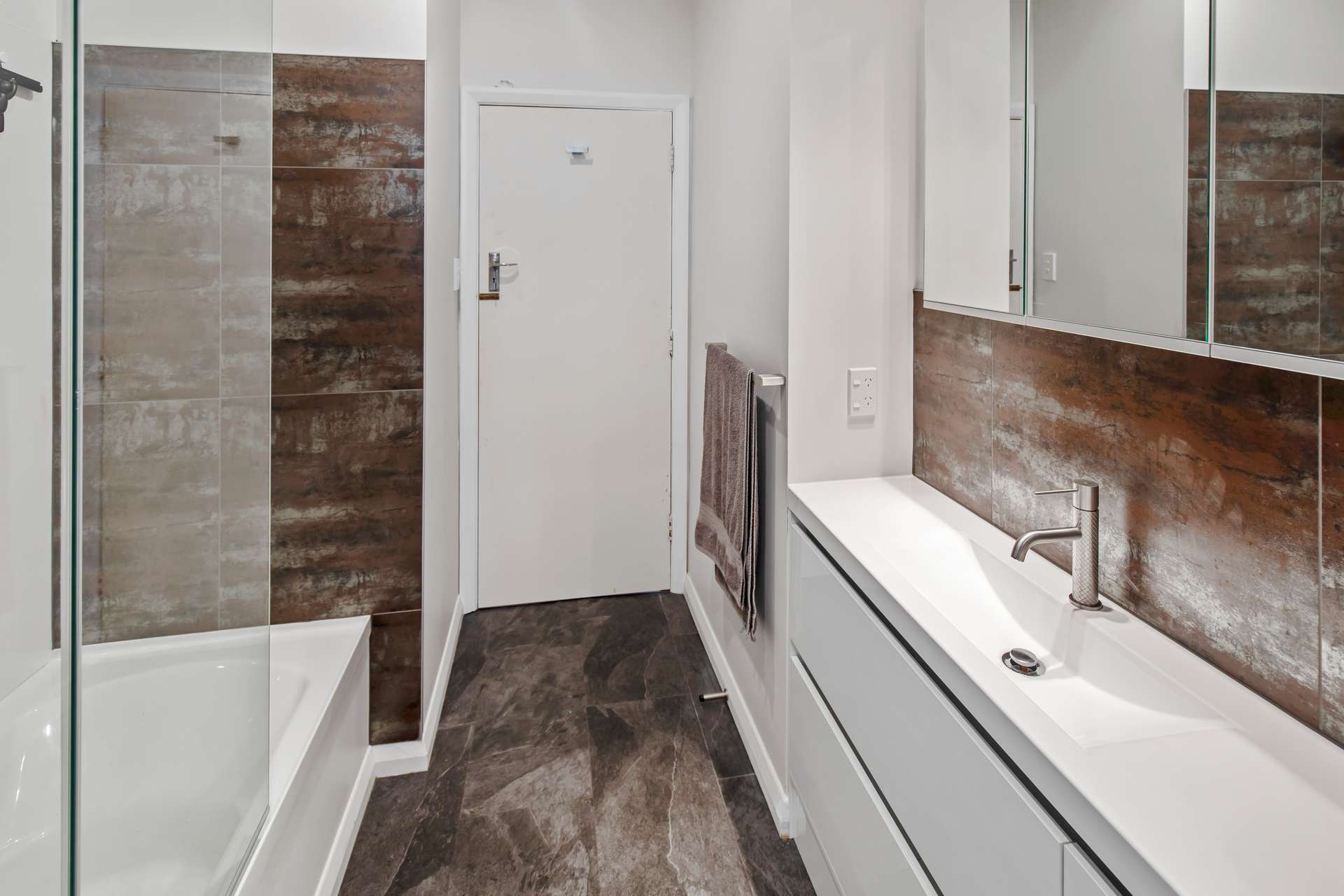 Sleek and stylish, the updated bathroom looks fabulous. It has a large shower over the bath, gorgeous handle-free vanity with beautiful splashback, and a separate toilet. The laundry has been stylishly updated too, it has lots of bench space and generous storage not often seen in a laundry.