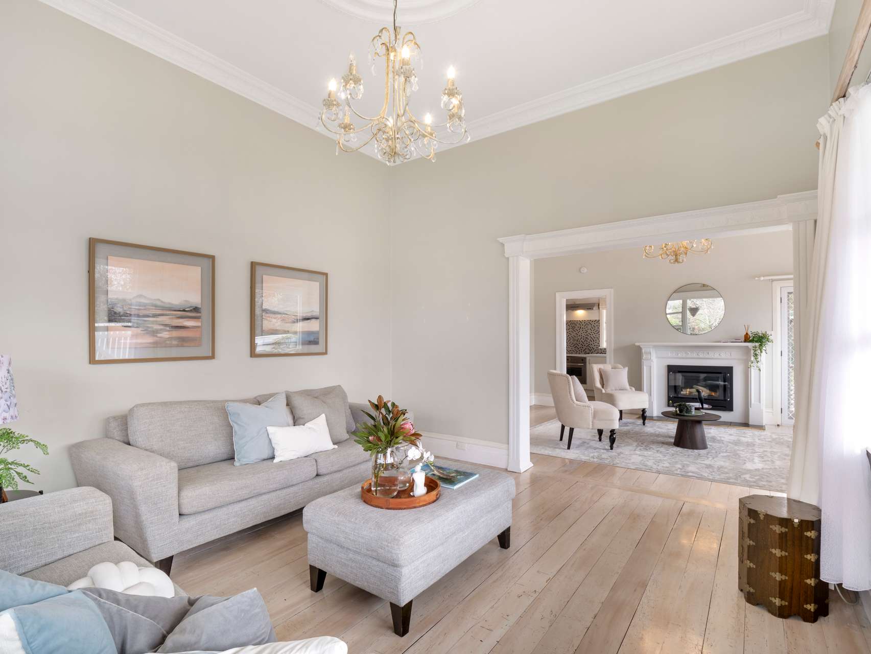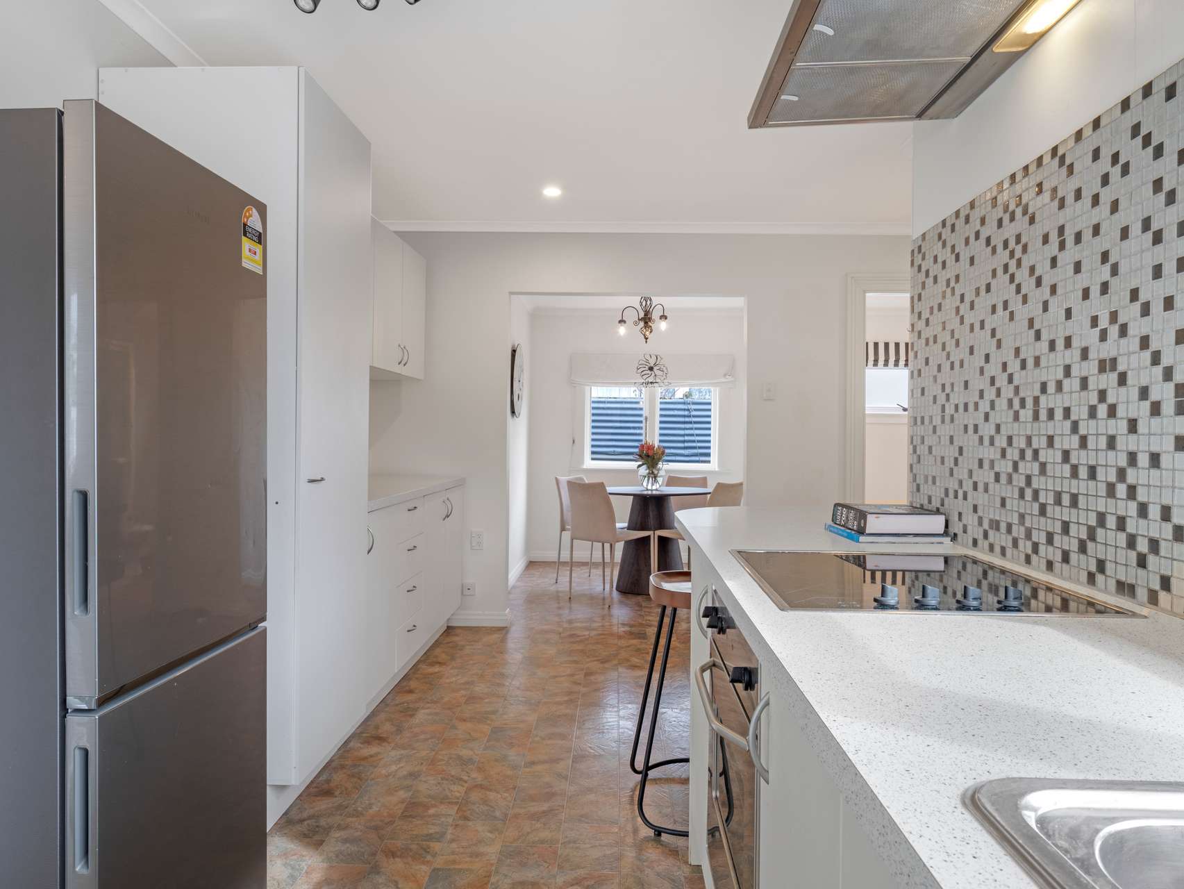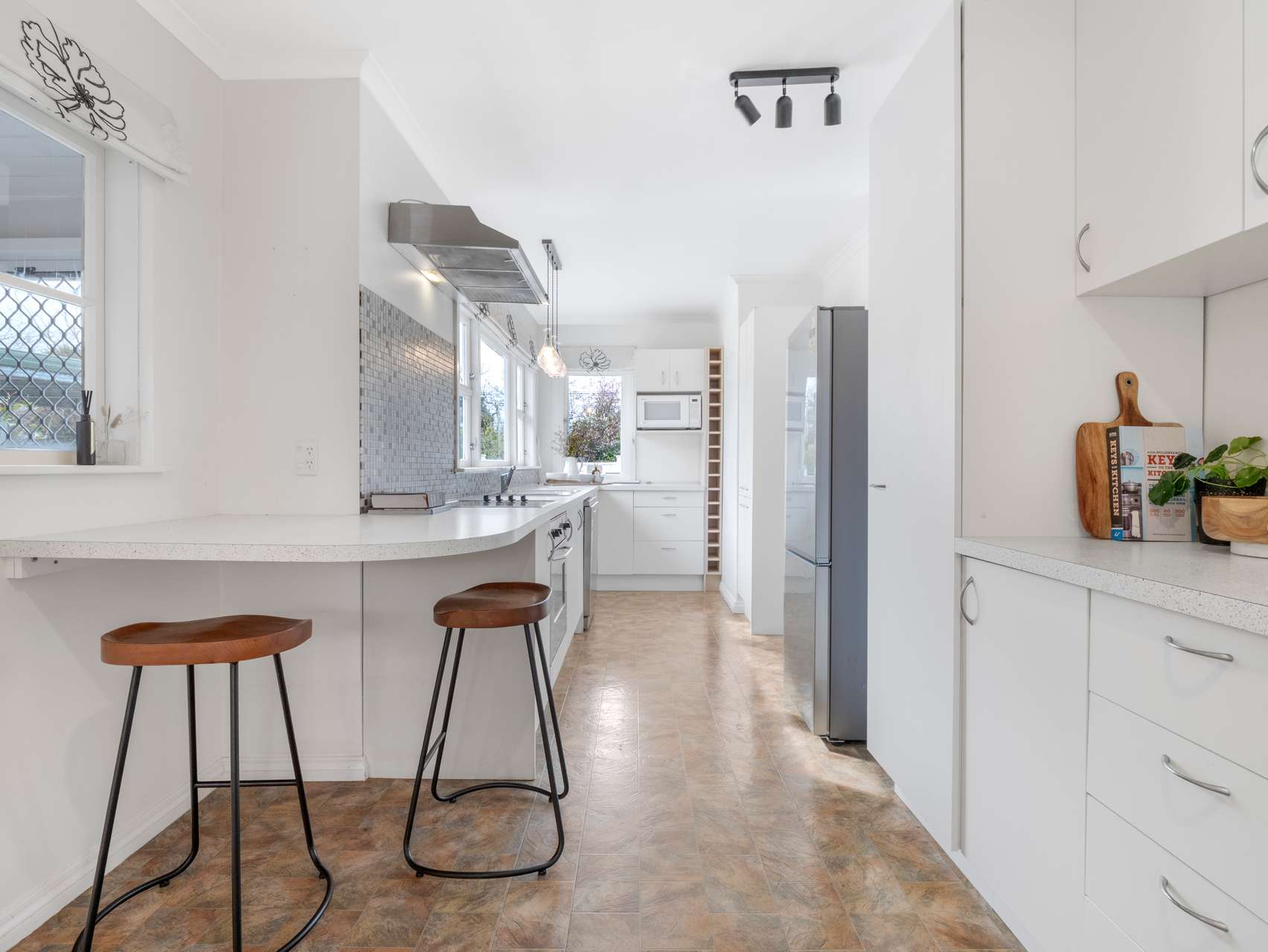 One lounge centres around the gas fireplace, perfect for cooler evenings, while the other is filled with natural light and is ideal for quiet weekends or gatherings with friends. The kitchen is designed for easy living with generous storage, plenty of bench space and a breakfast bar that naturally becomes the spot for coffee, homework or a glass of wine. With the dining room alongside, shared meals flow seamlessly into the rhythm of the home.