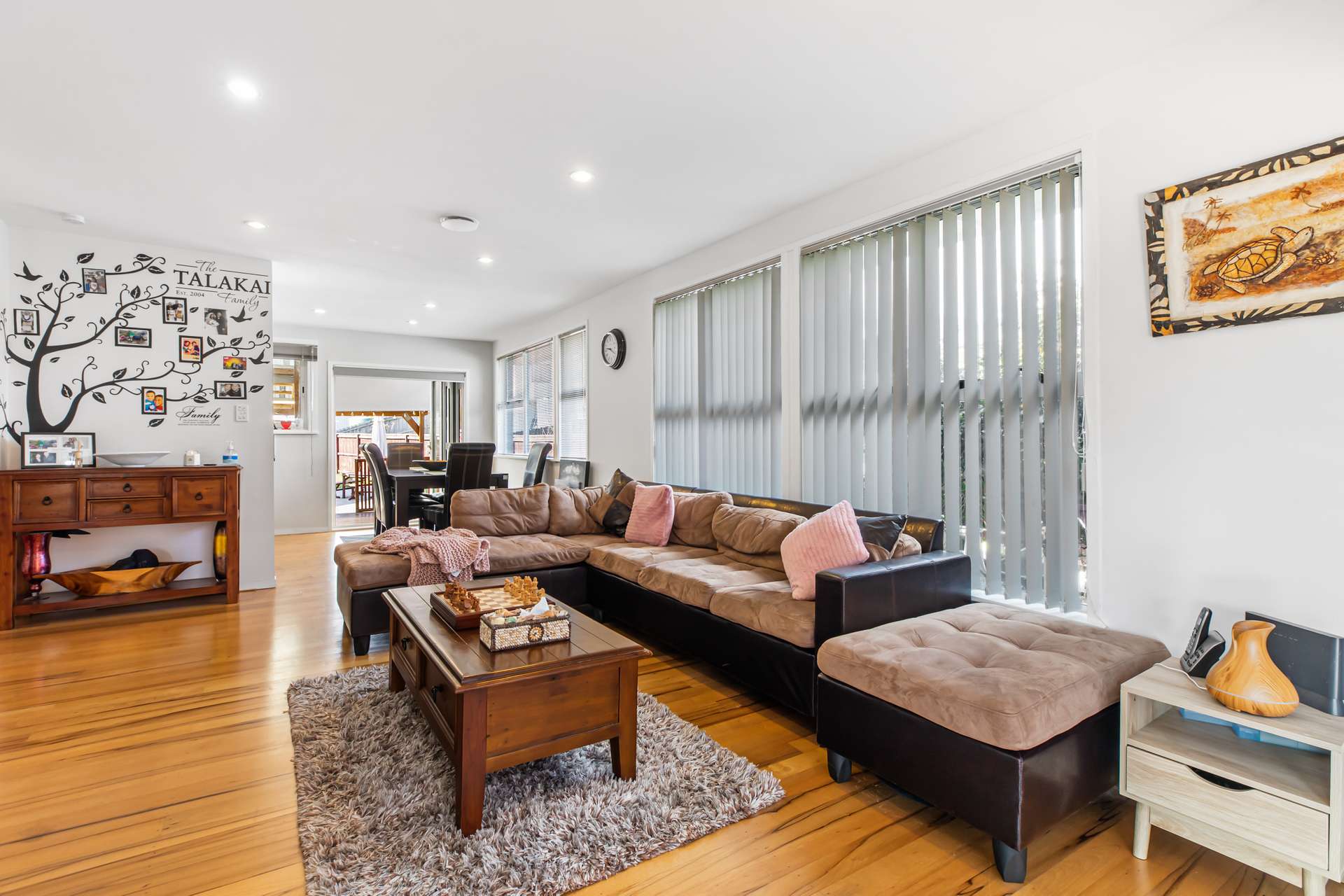 The lounge itself has a gorgeous light colour scheme, rich flooring and modern blinds to cover the large windows. It’s a fabulous big room with a great family vibe.