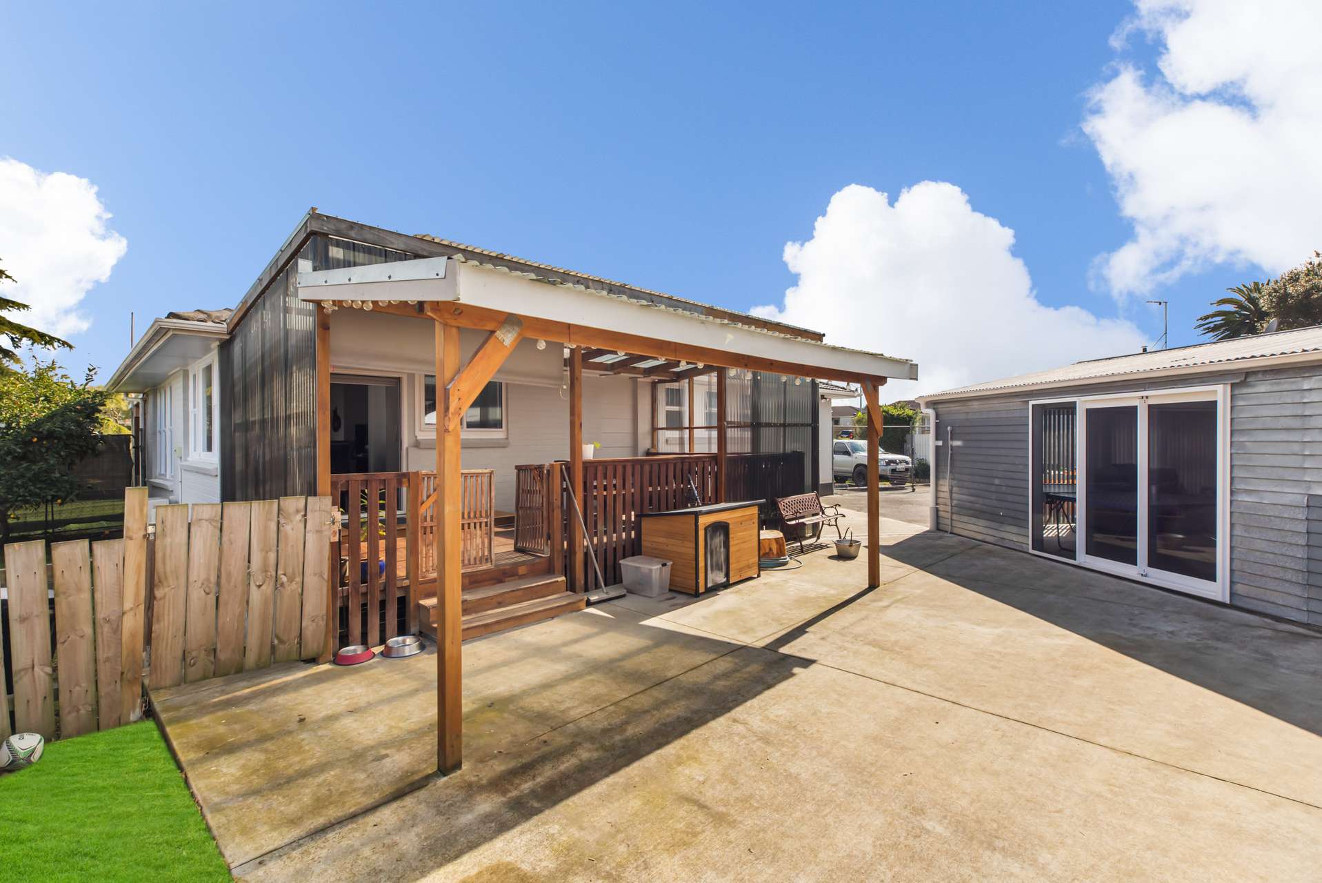 Coming off the spacious lounge the covered deck that leads through to the beautiful, fenced front yard is just perfect. Nice and private, it’s the ideal spot to enjoy the warm Auckland weather while being protected from the sun. The new owners will be able to relax and toast their new home and celebrate with an easy BBQ while the kids run around outside.