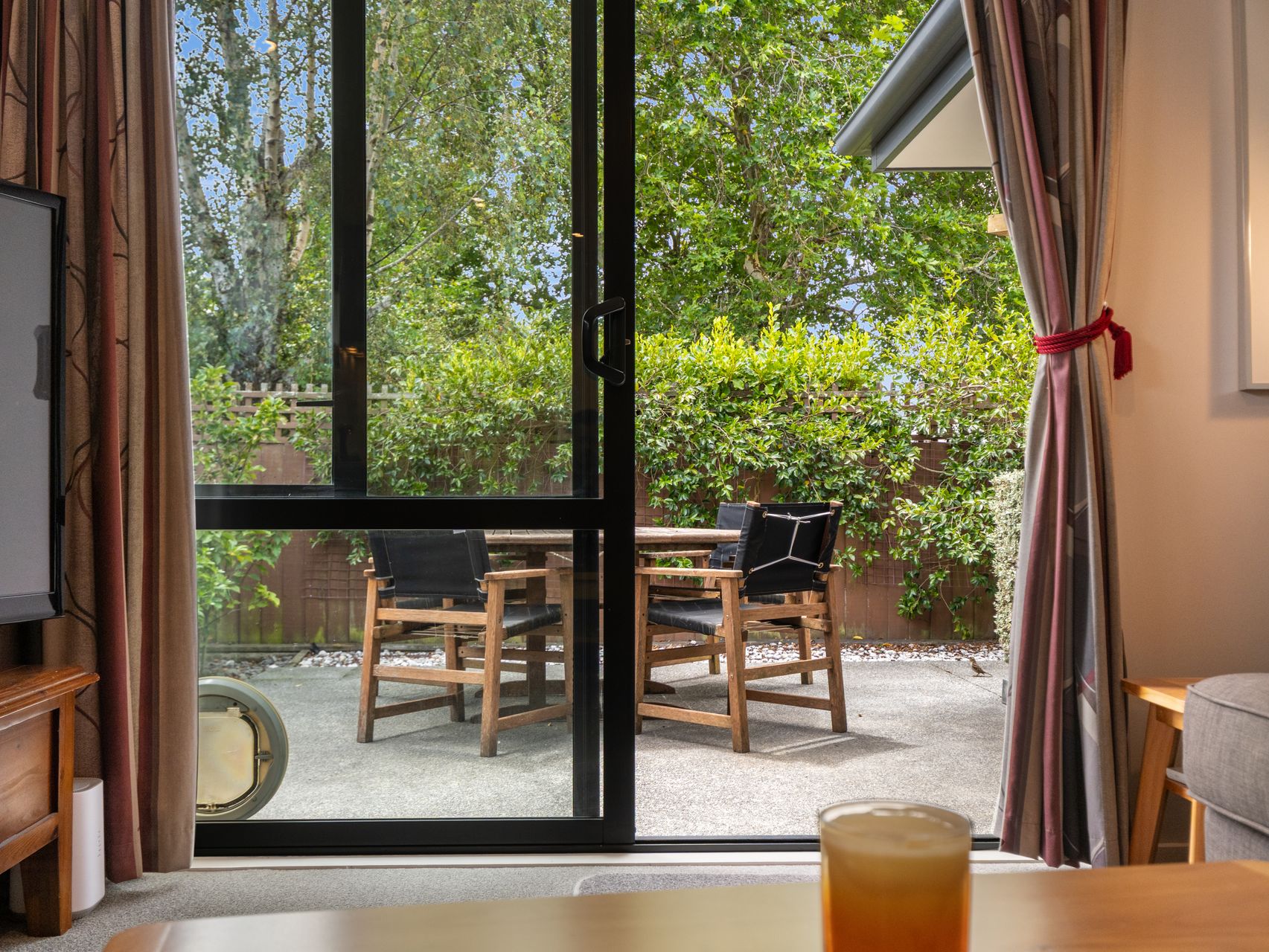 Outside, the patio is sheltered and peaceful, surrounded by greenery, trimmed hedges and a dark timber fence that creates a calm, secluded outdoor space. It’s an ideal spot for weekend brunches, evening meals or simply enjoying the quiet. A concrete driveway leads to the garage, rounding out the practical features nicely.