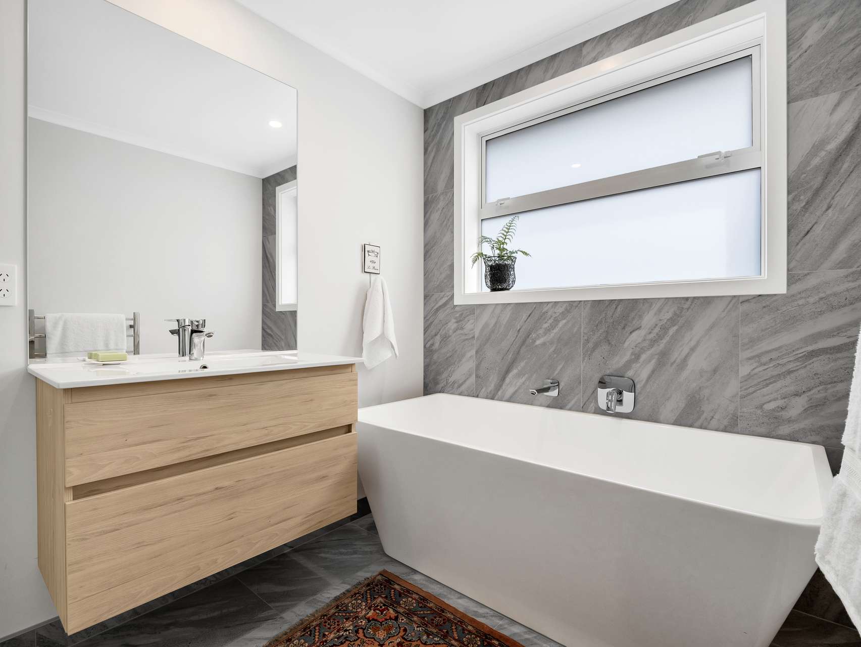 The master suite is a true retreat with its own ensuite and direct garden access, while two additional bedrooms offer flexibility for kids, guests or a work from home setup. Both bathrooms are finished with timeless touches, tiled detailing, modern vanities and quality fittings that promise style and function for years to come.