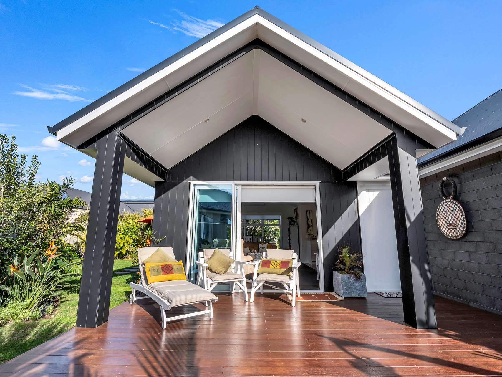 Outside, the 400m² section has been thoughtfully landscaped for low maintenance living without sacrificing charm. Tropical planting and private alfresco spaces set the scene for summer barbecues, family meals under the stars or quiet evenings surrounded by greenery. Double car parking ensures everyday convenience is taken care of.