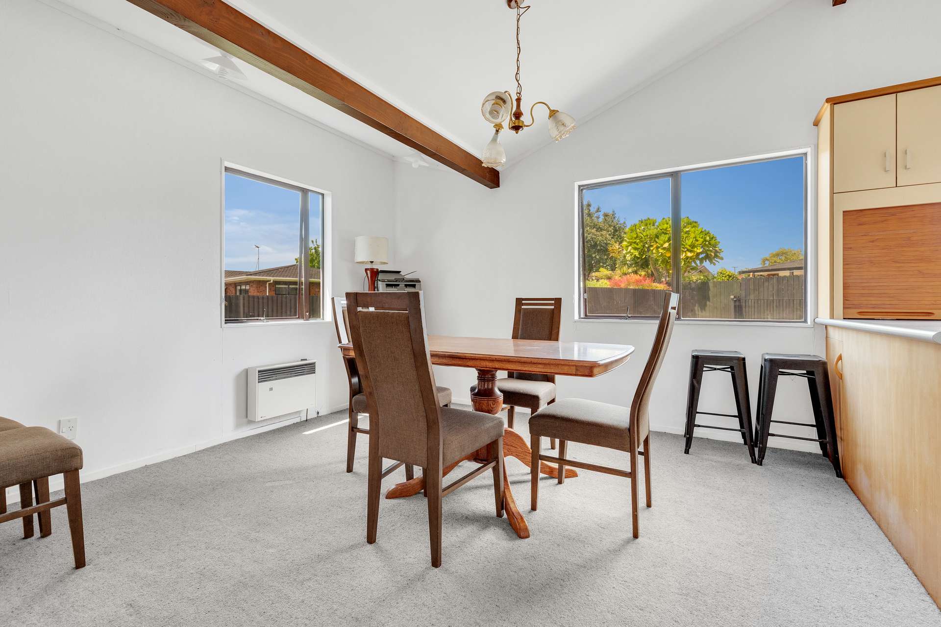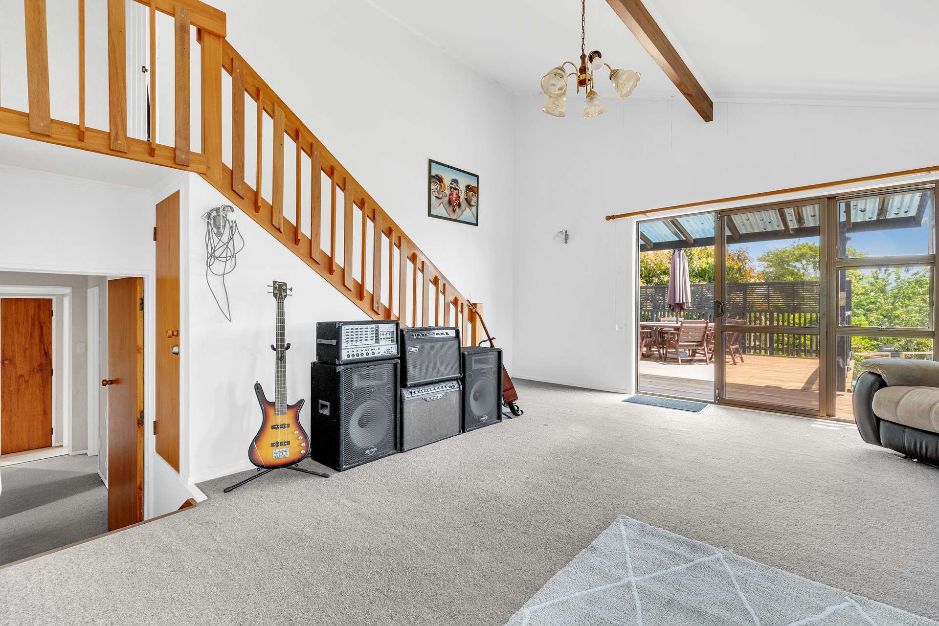 There’s no shortage of space, with a second living area offering flexibility for families, and a multipurpose games room currently set up with a pool table—ideal for kids, teens, or entertaining guests. There are four bedrooms in total, and the upstairs bedrooms have beautiful high-angled ceilings taking full advantage of the home’s gorgeous roofline.