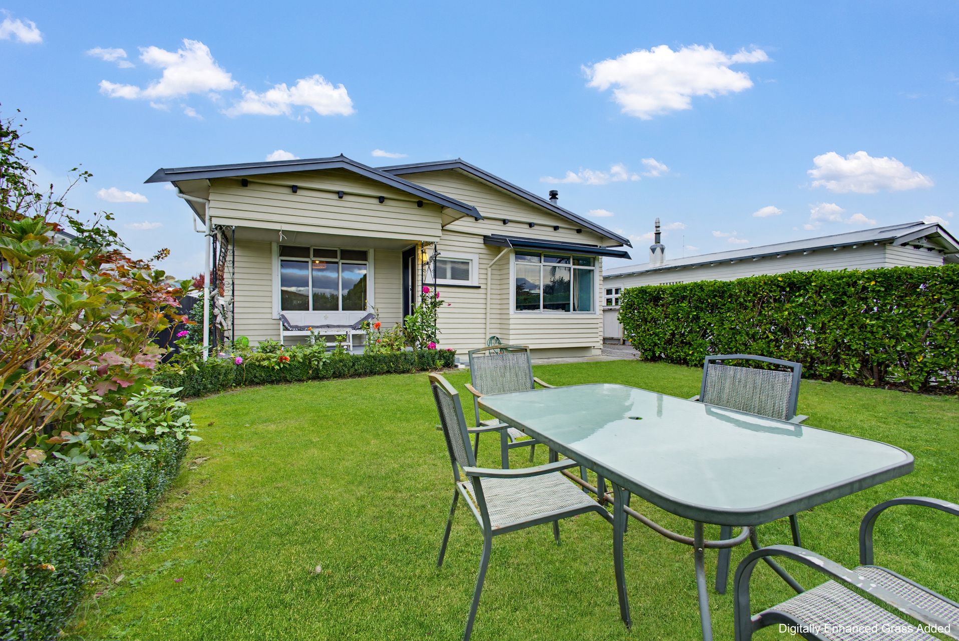 Outside, the hedged front lawn feels private and surprisingly generous, while the small pergola-covered patio at the back looks out across the grass for evening drinks, weekend barbecues or a cup of tea in the sun. A detached utility building adds serious bonus value, with a games room, storage area and small garage-sized zone for bikes, tools or tinkering.