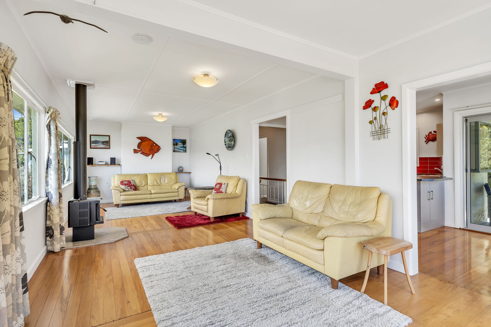 Spread over two levels, the home offers four bedrooms and two bathrooms, making it a flexible option for families, guests, or those wanting separation between living zones. Character rimu floors add warmth and personality, complemented by a modernised kitchen and a well-appointed tiled bathroom upstairs. The north-east facing living area captures sun throughout the day and opens onto deck.