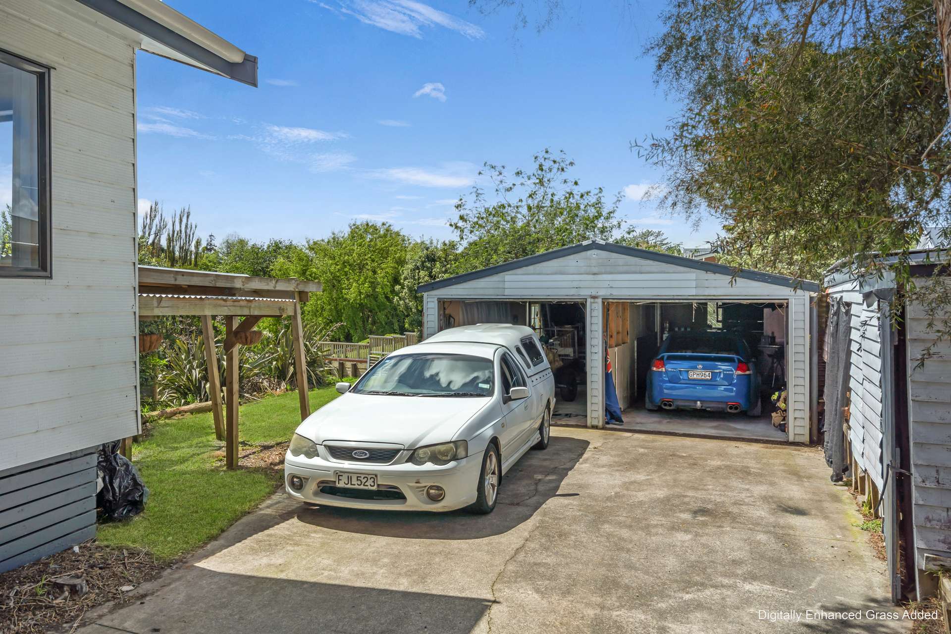 Outdoors, there’s space to live truly. The 2,104m² section rolls gently away from the home, creating tiers of usable land perfect for gardens, kids, hobbies or that dream workshop or studio. The double garage and off-street parking keep everything practical, whether you’ve got tools, toys or guests dropping by.