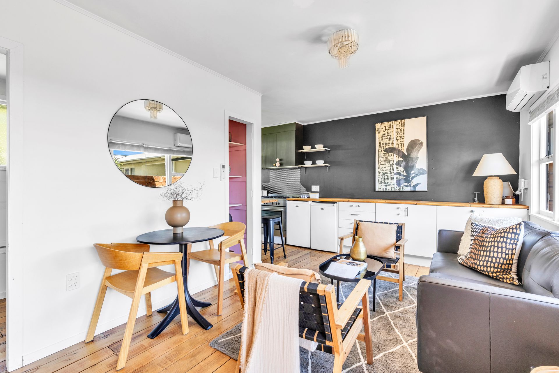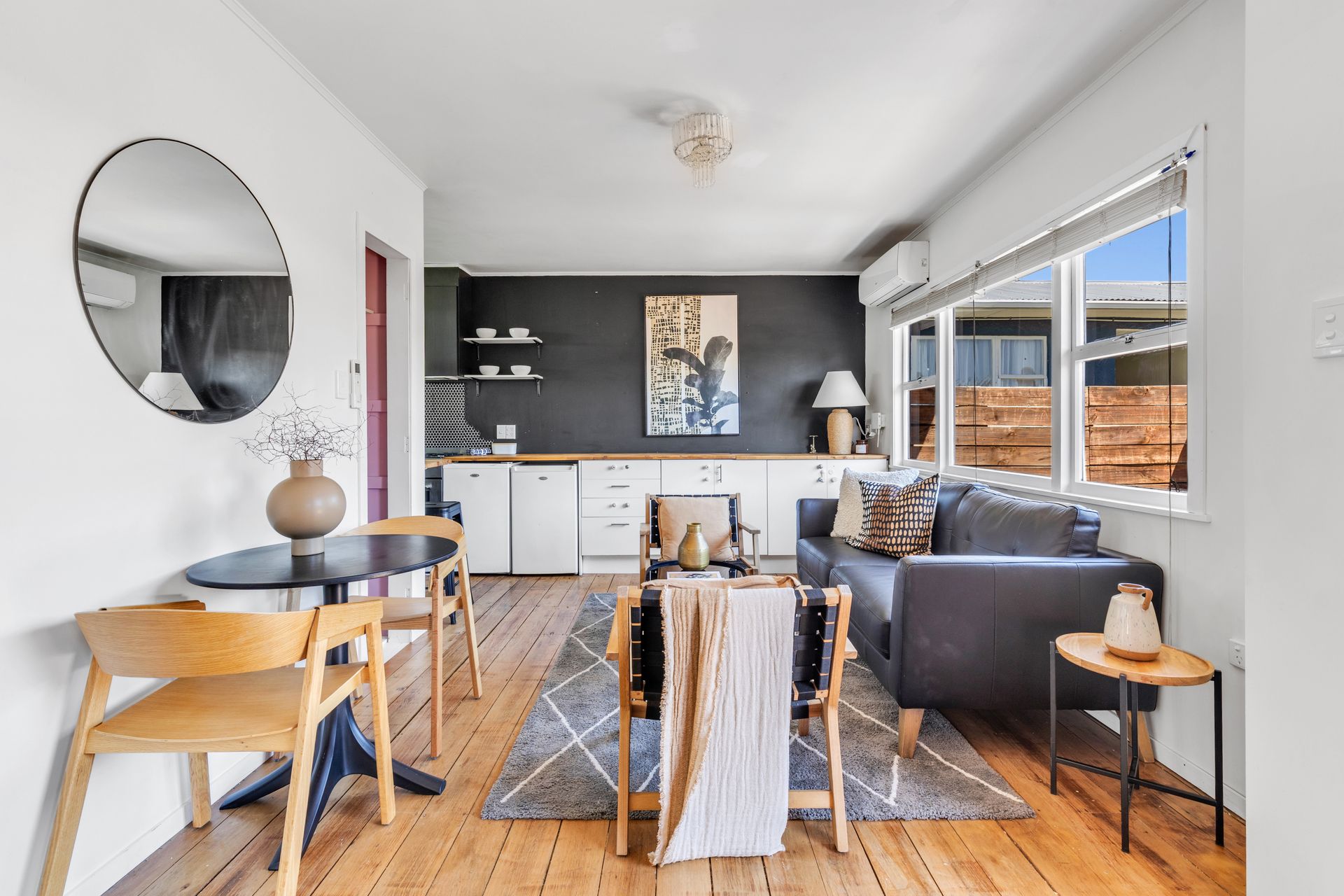 Large windows draw in natural light, while the well-appointed kitchen features generous bench space and a clean, modern finish. It is an easy, sociable layout that feels connected without wasting a single metre.