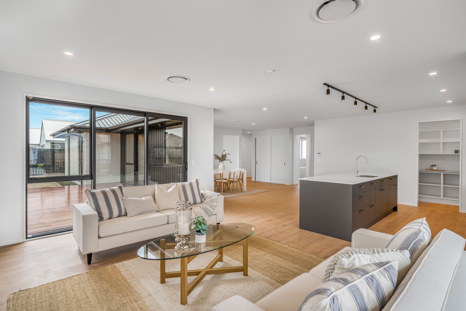 Two living areas: open-plan kitchen, dining and living, plus a separate lounge/media room or optional fourth bedroom.