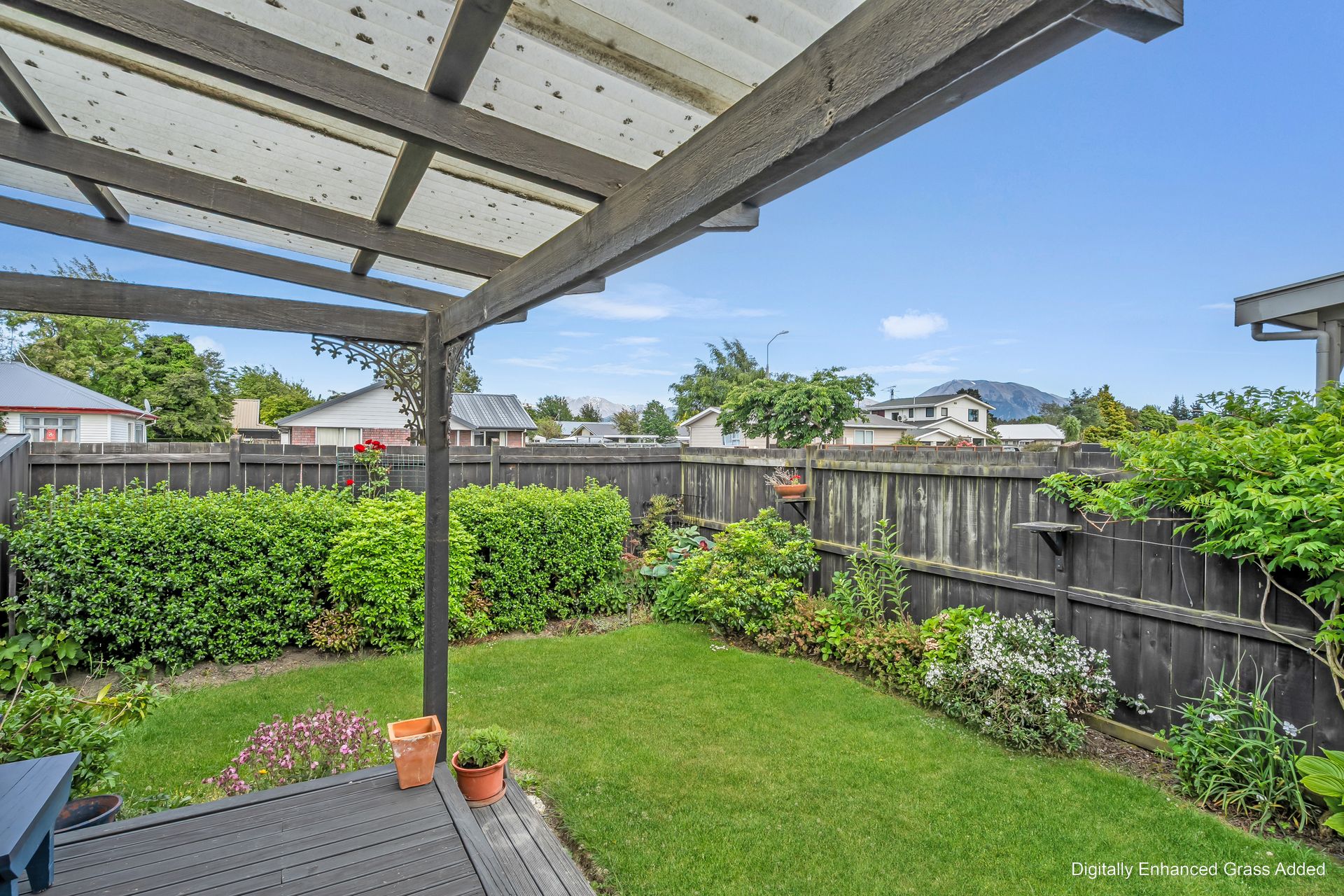 Outdoors, the covered rear deck is a standout - private, sheltered and beautifully placed to capture views of Mt Hutt. It’s the kind of spot that extends your living year-round: morning coffees in your slippers, long summer lunches and quiet evenings watching the mountain turn pink at dusk. Raised garden beds, tidy lawn and established borders add charm and practicality, with enough space to potter, plant or relax.