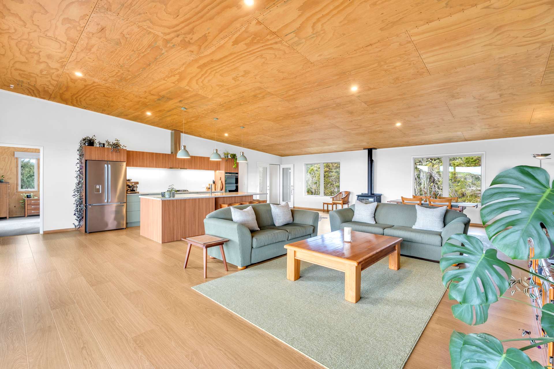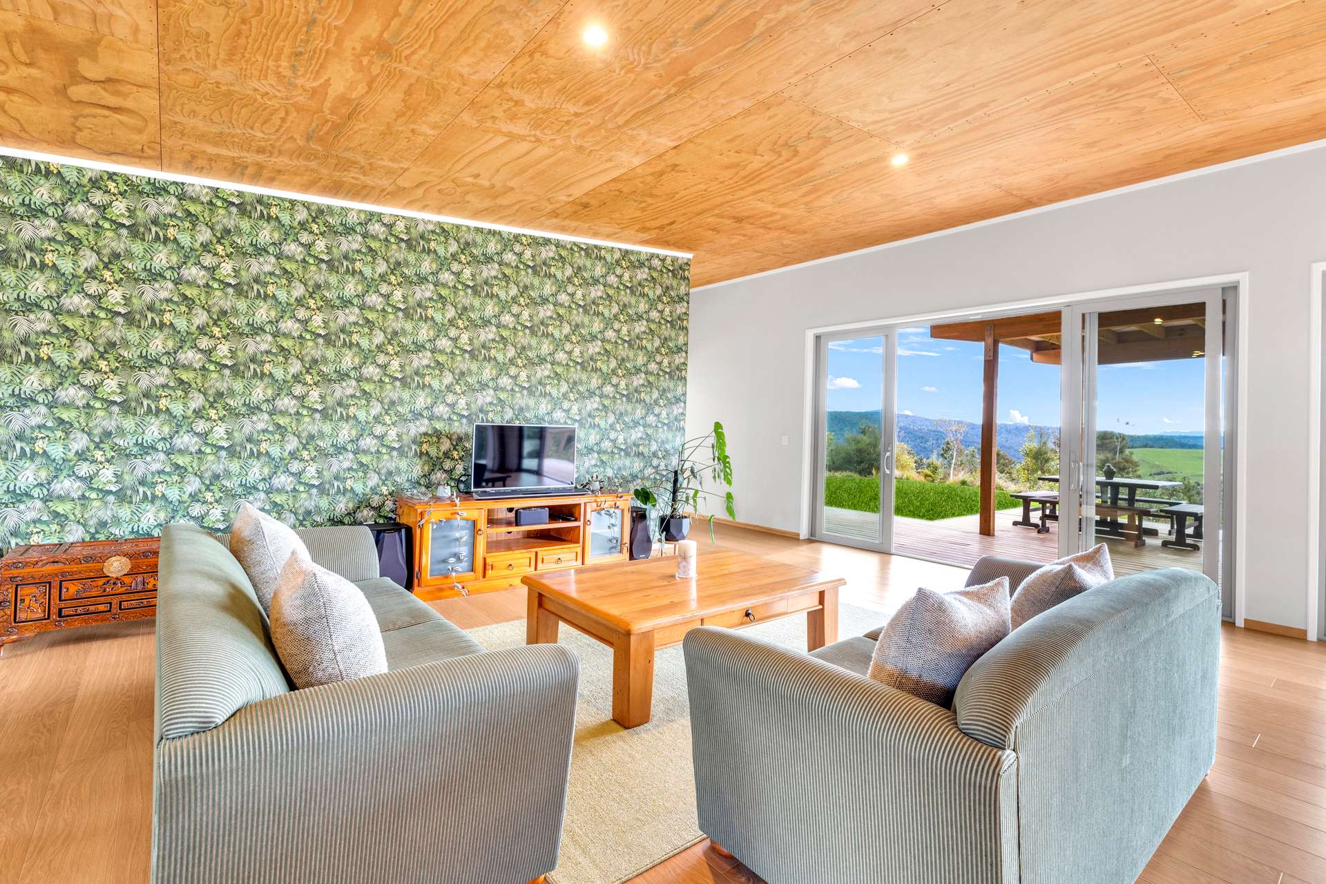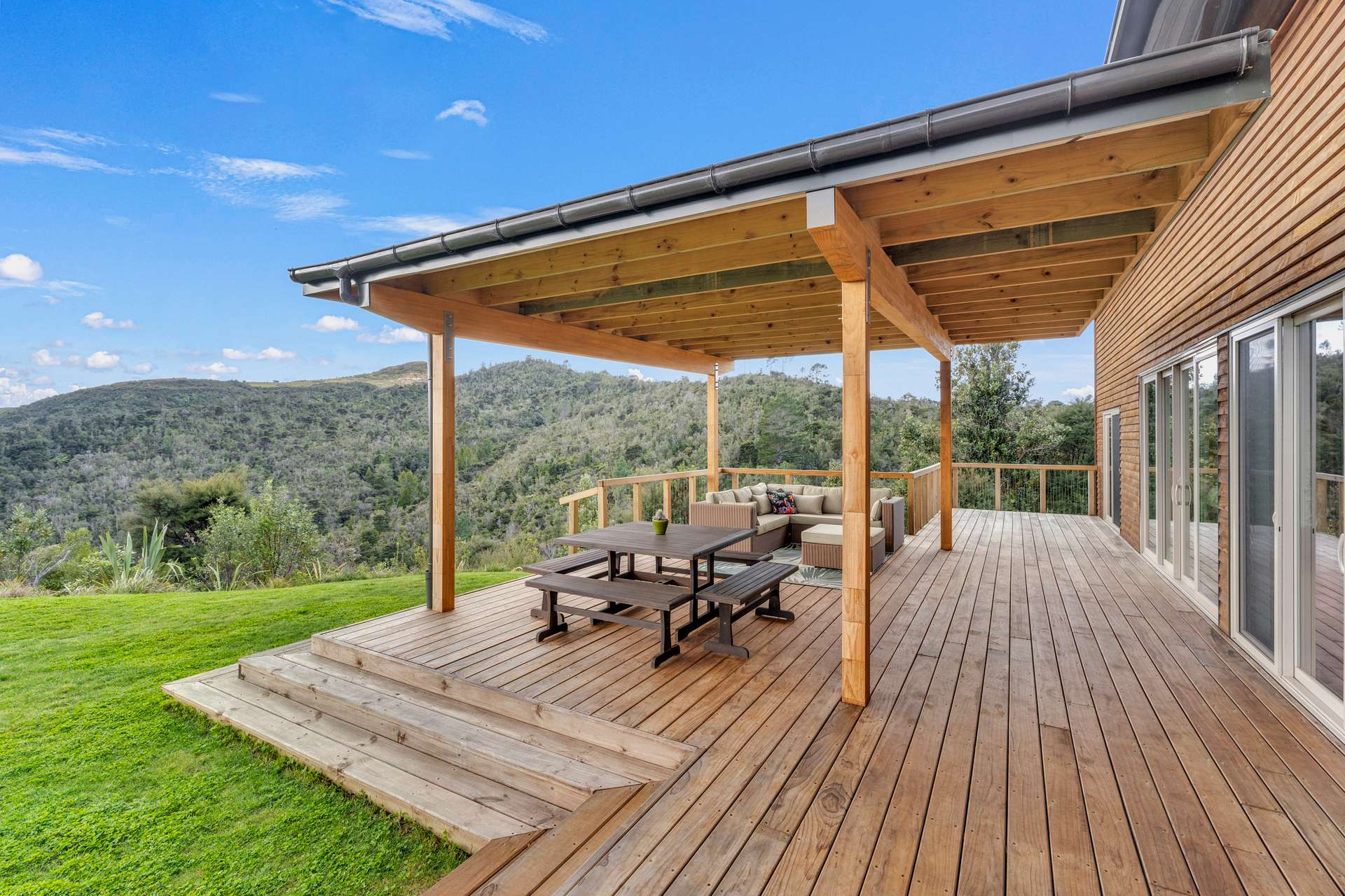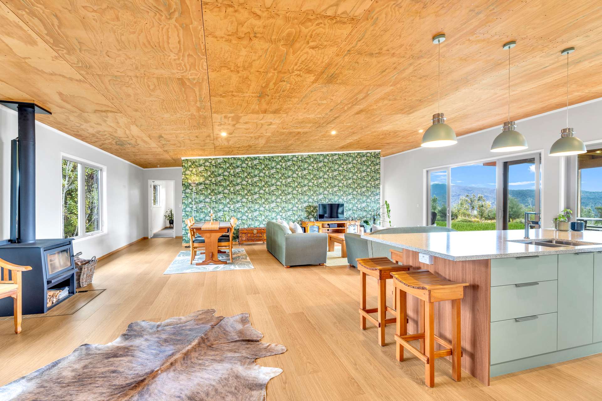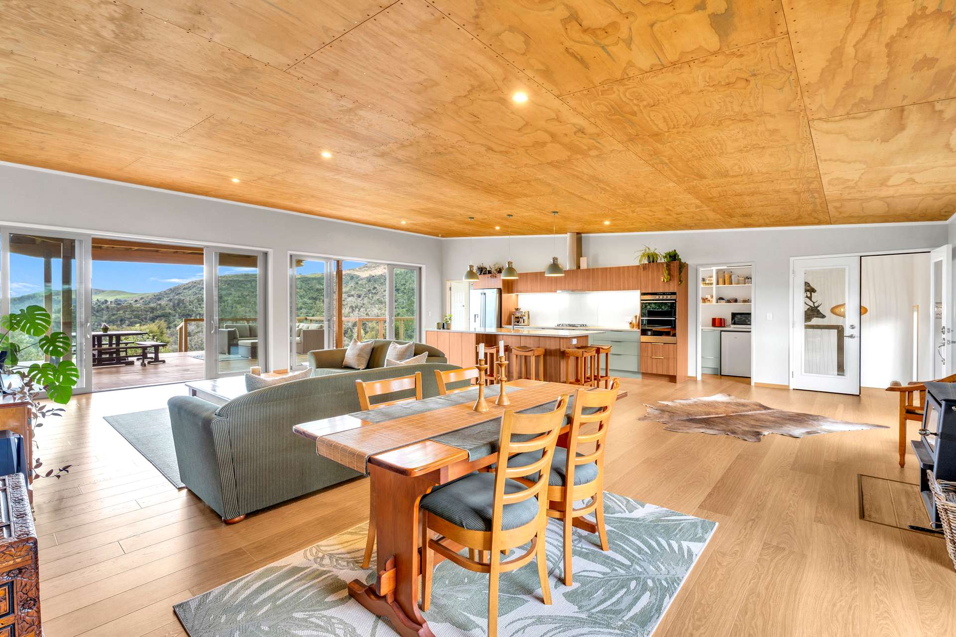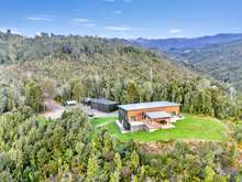 Built three years ago this super large modern home delivers on all levels. Access via a well formed metal driveway which winds up to the home.Positioned on the ridge to take advantage of stunning wide ranging views you will not want to leave.Set amongst mature bush the home is a tranquil peaceful escape from the world with just the sound of the river in the distance.The property has a great layout with open plan living areas ideal for entertaining with doors out to a large covered deck area.A bespoke kitchen with butlers pantry make for practicality with plenty of space for guests.With an oversized wood burner for warmth and ambience this is the heart of the home.A long corridor separates the family or guest area complete with an unobtrusive office nook.