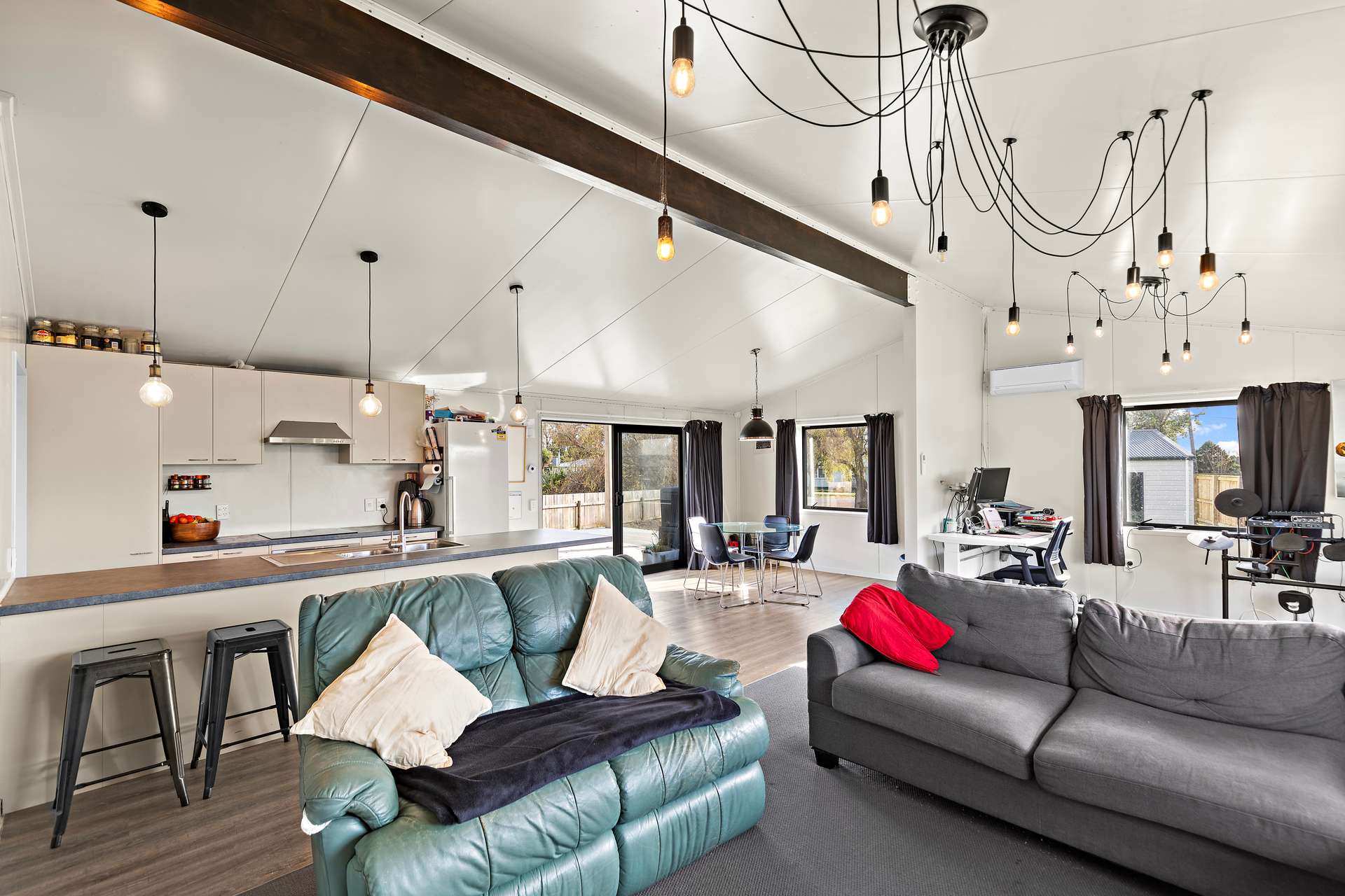 Built just a few years ago in 2020, this lovely 5 bedrooms comes complete with double glazing and the remainder of its 10 Year warranty. It boasts open plan living, a beautiful high raked ceiling and lots of natural light. Heating is taken care of with a heat pump for year round comfort, and it’s spacious enough to have separate zones for living and dining.
