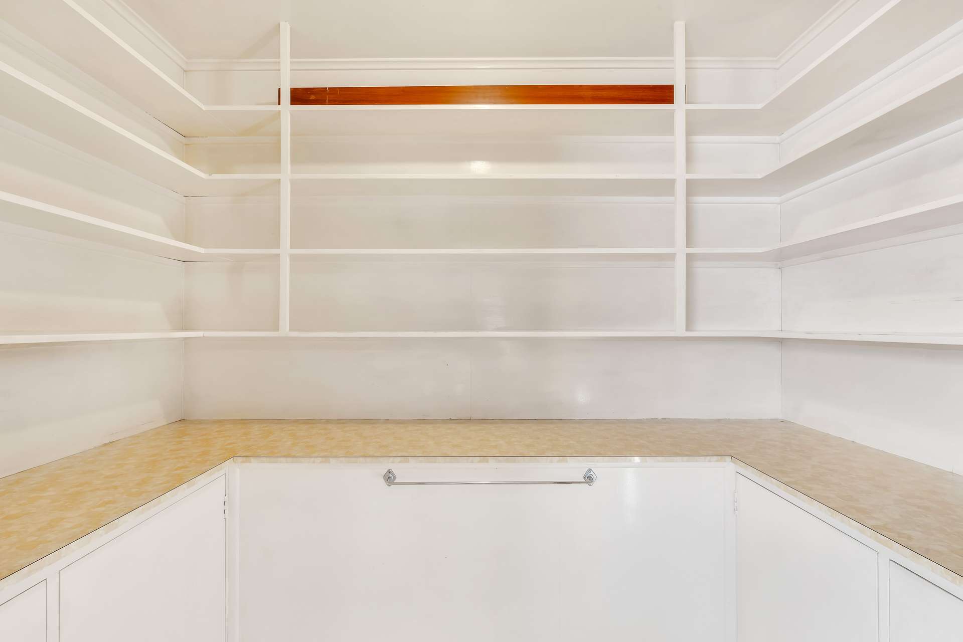 The bathroom is well-appointed with a bath, vanity, and separate shower, while the large laundry includes a shower tub, hand basin, and a cleverly designed linen cupboard accessible from both the hallway and laundry. A separate toilet adds extra convenience for busy households.