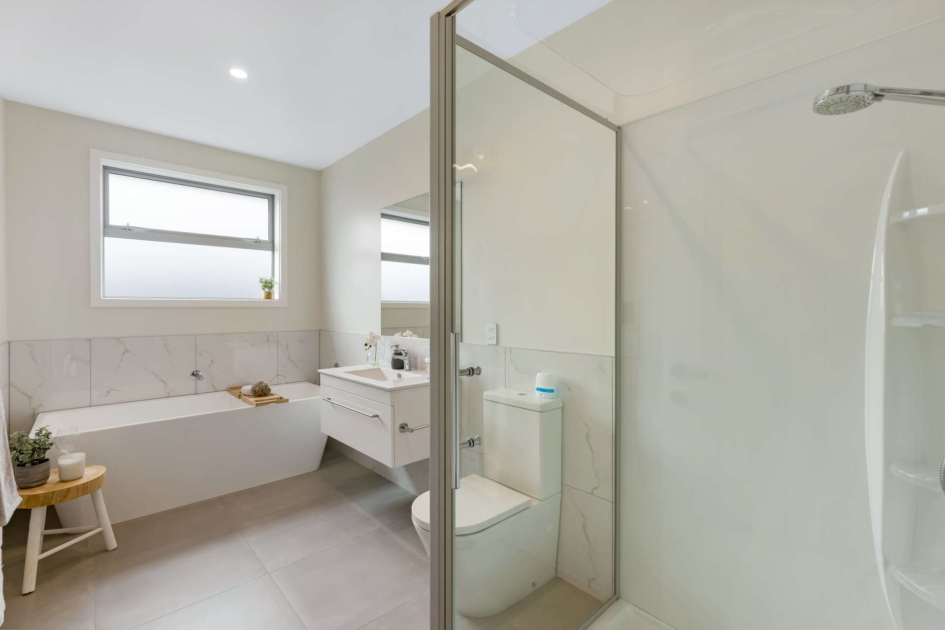 Inside, the home is styled in a soft, contemporary palette that enhances the sense of space and light. From the beautiful flooring to the quality cabinetry and tilework, every detail has been carefully chosen to reflect comfort and understated luxury.