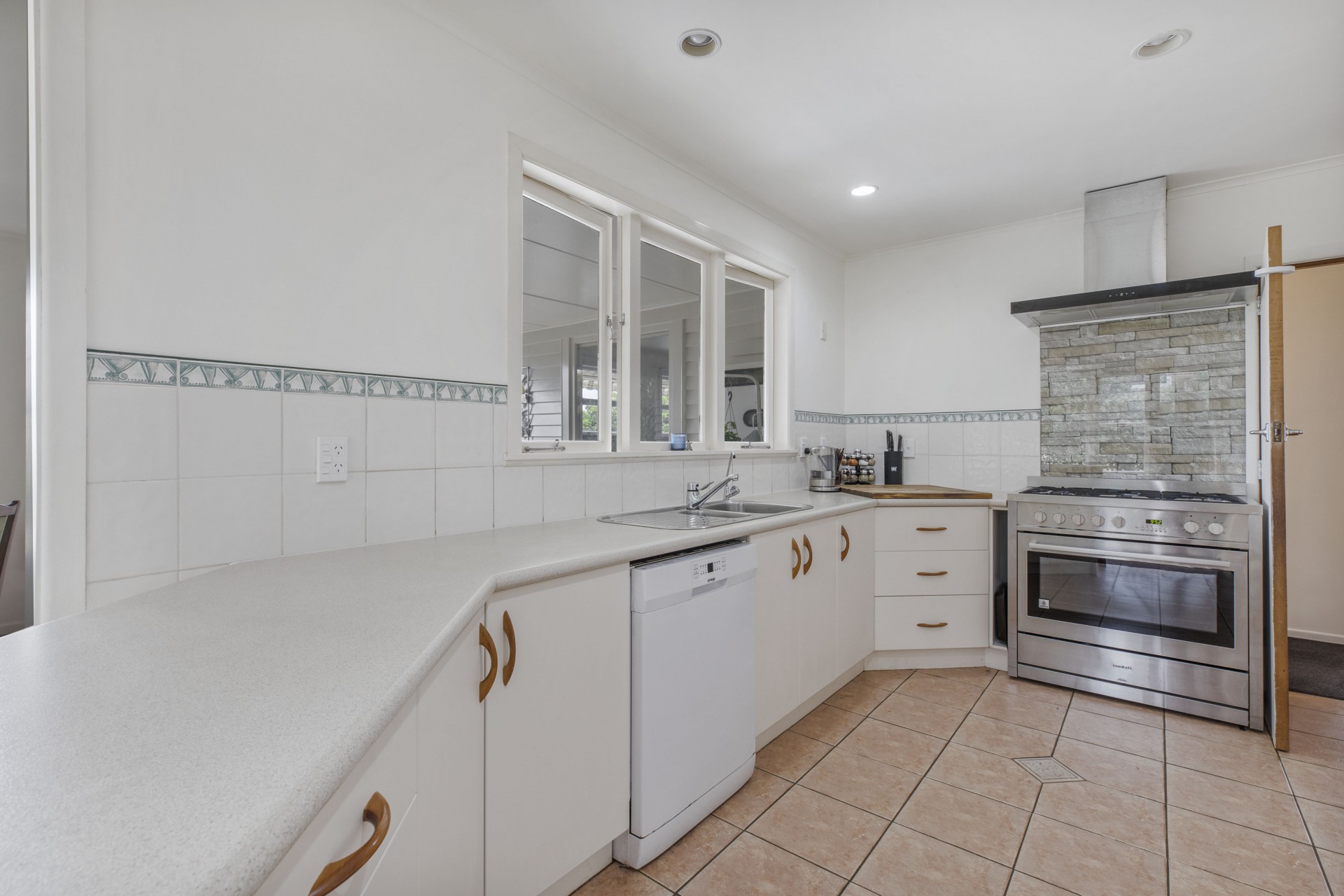 The kitchen features a fantastic five burner gas hob with electric oven, great storage options and bench space, and a breakfast bar adjacent to the dining room. Both the dining room and lounge open to two separate, covered deck areas, perfect for outdoor dining and lounging - the lounge boasting a wood-burning fireplace, perfect for keeping the family cosy in the cooler months.