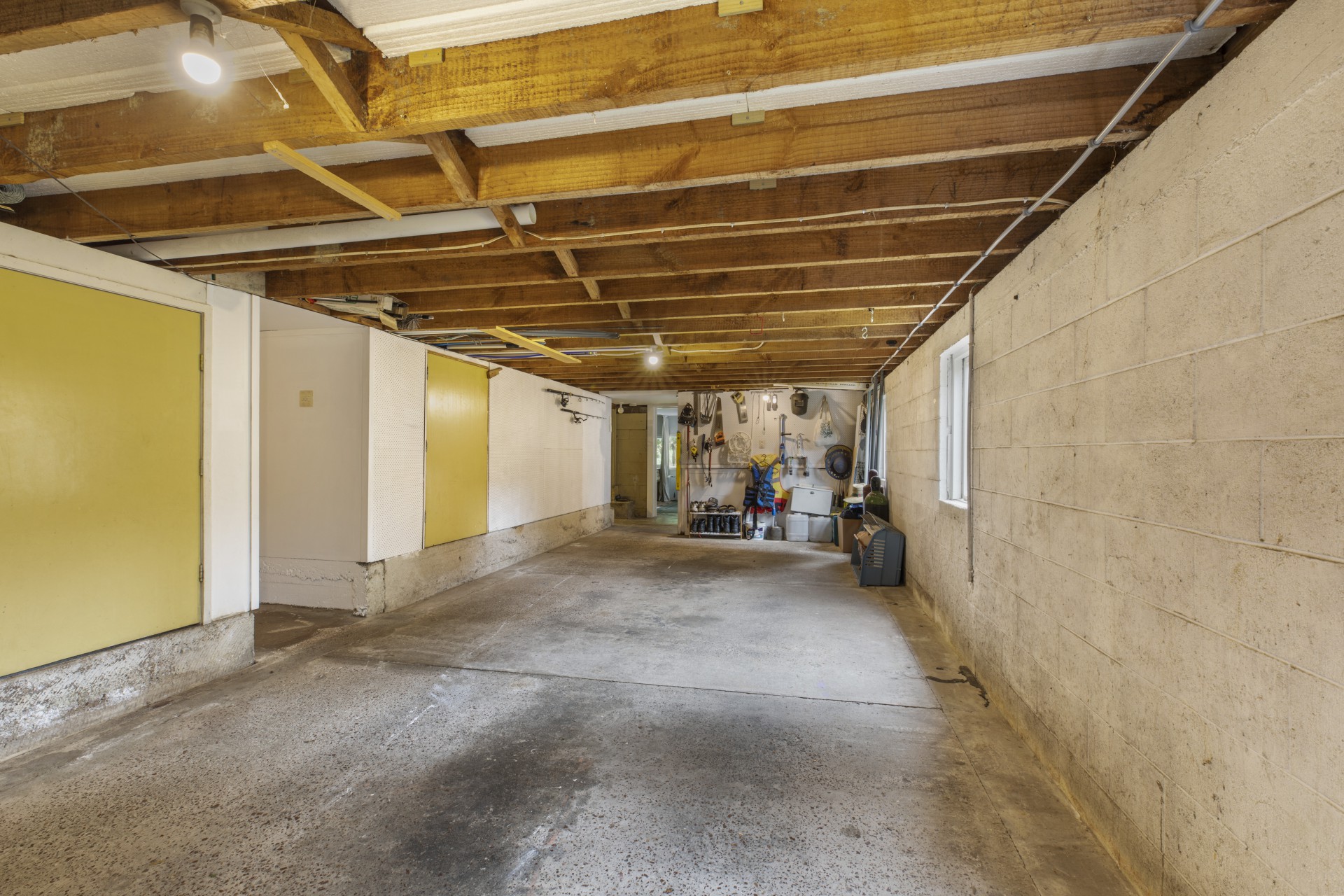 Downstairs you’ll find the tandem garage, a HUGE storage room, along with a workshop and enormous rumpus.