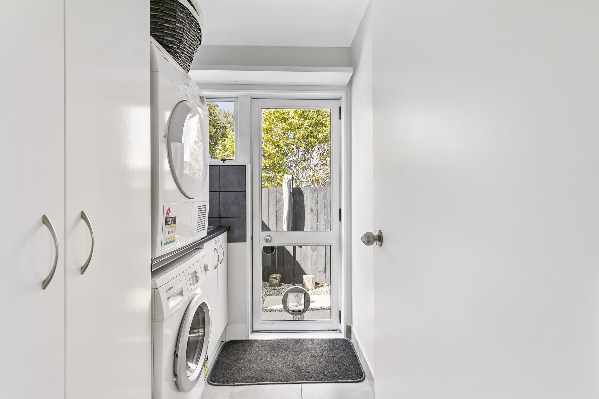 All three-bedrooms, two cosy doubles and the beautiful master, have built in wardrobes. Each room is light and bright with large windows. It’s easy to keep the bedrooms quiet and private from the living area by simply closing the door to the hallway - perfect for early bedtimes and flat dynamics. The bathroom is modern, with floor and half-wall tiles, and features a shower and tub - perfect for a relaxing soak after a long day. Right next door is the laundry area with built-in sink and fantastic storage space.