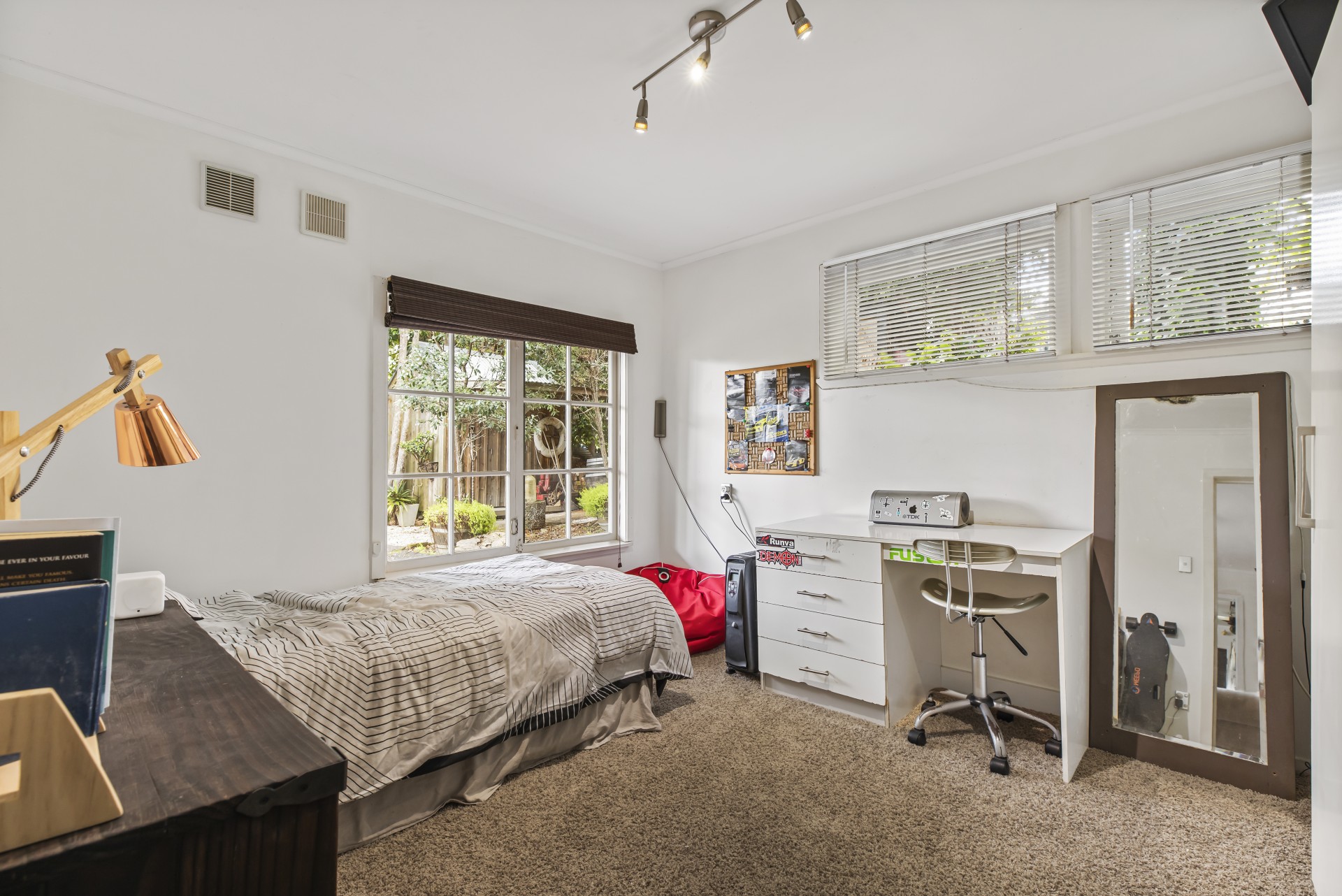 From the dining area you can pop outside to the covered deck, the perfect spot for al fresco dining. There are 2 bathrooms upstairs with beautiful calm colour schemes, where you can have your choice of a shower or a bath as well as 3 lovely bedrooms.
