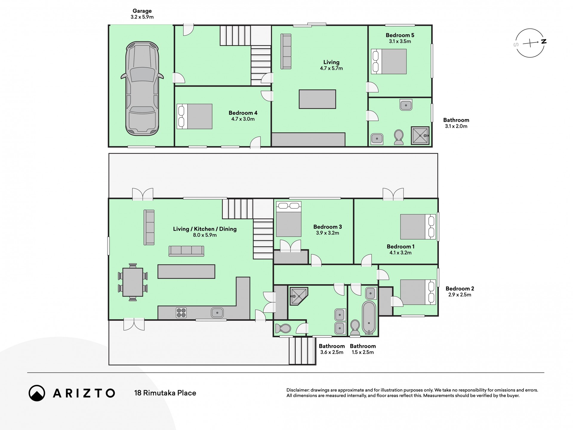 Inside, this big 5 bedroom home is homely and warm. There’s an internal access garage downstairs as well as 2 restful double bedrooms with stunning views of the gardens a spacious bathroom and living area. The downstairs area has everything you need and can be used as part of the main house, or as a guest space.