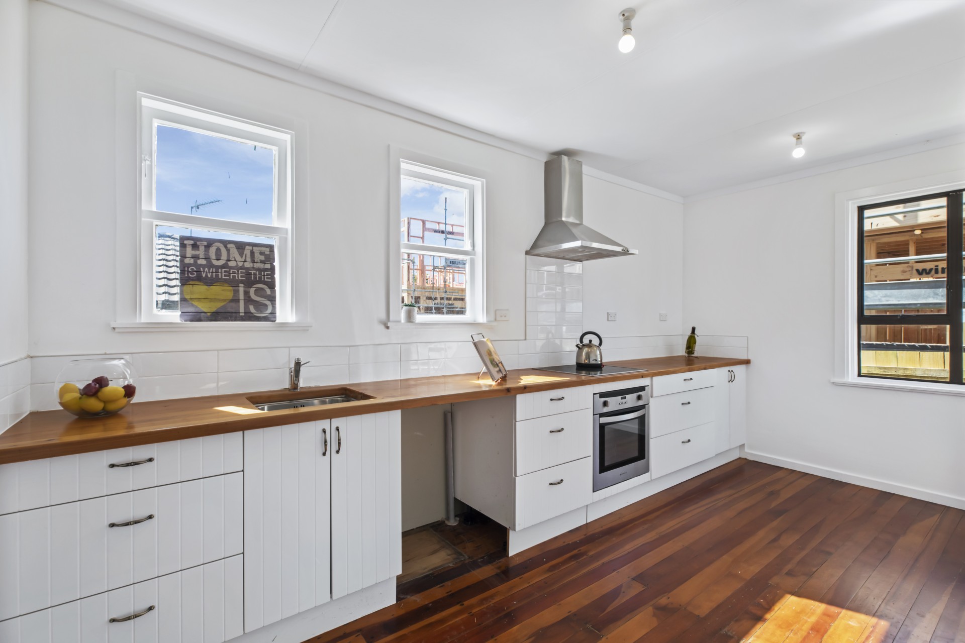 Only three years old, the kitchen has an eye-catching Macrocarpa bench top, white tiles and cabinetry, giving it a relaxed country vibe. The brand new bathroom has a corner shower and sleek white cabinetry. This great home has three generously sized bedrooms, two with built-in wardrobes and stunning flooring with big windows to enjoy the sunshine.