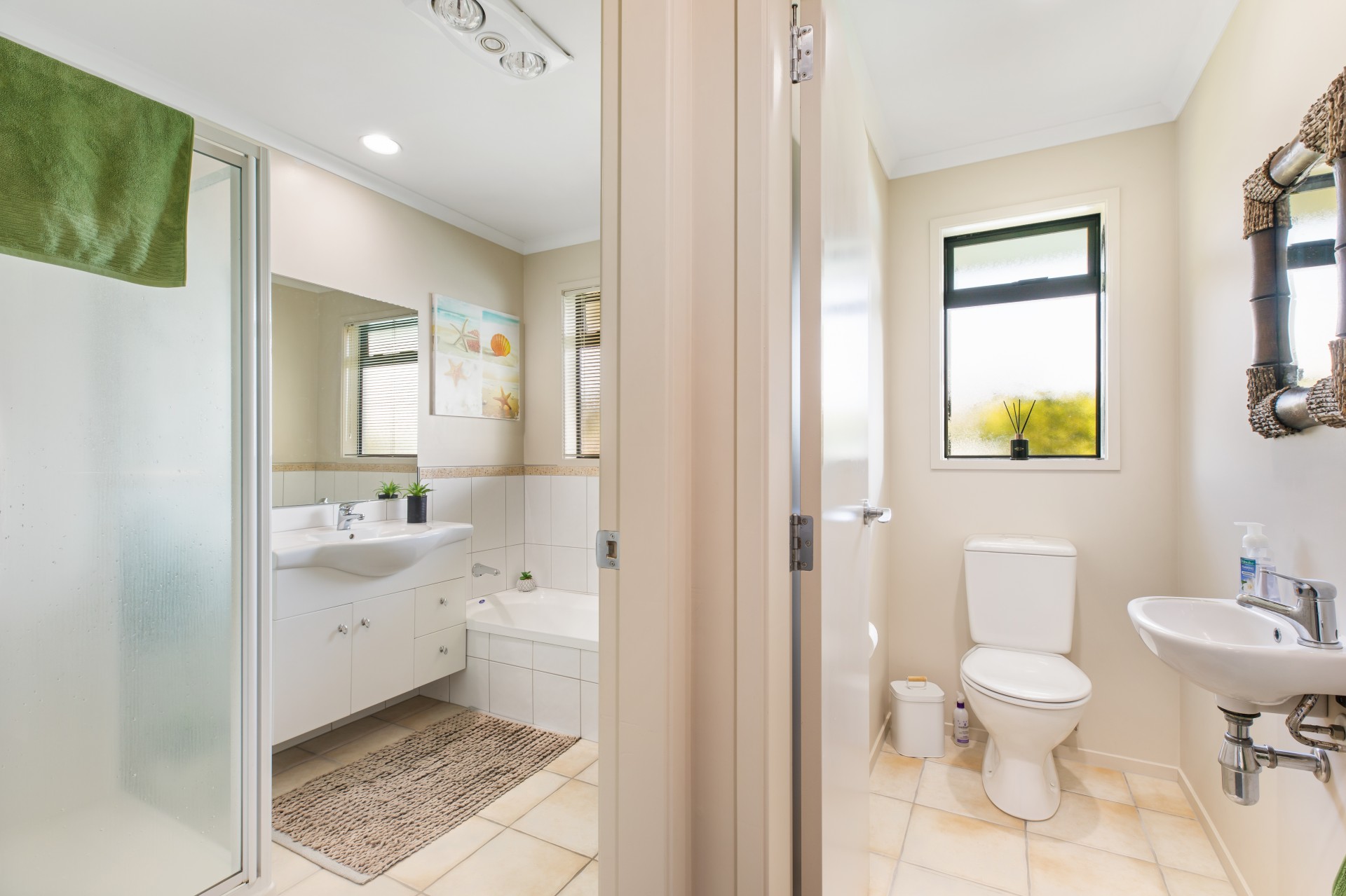 The modern family bathroom has both a bath and shower, as well as a separate toilet next door – a great layout.