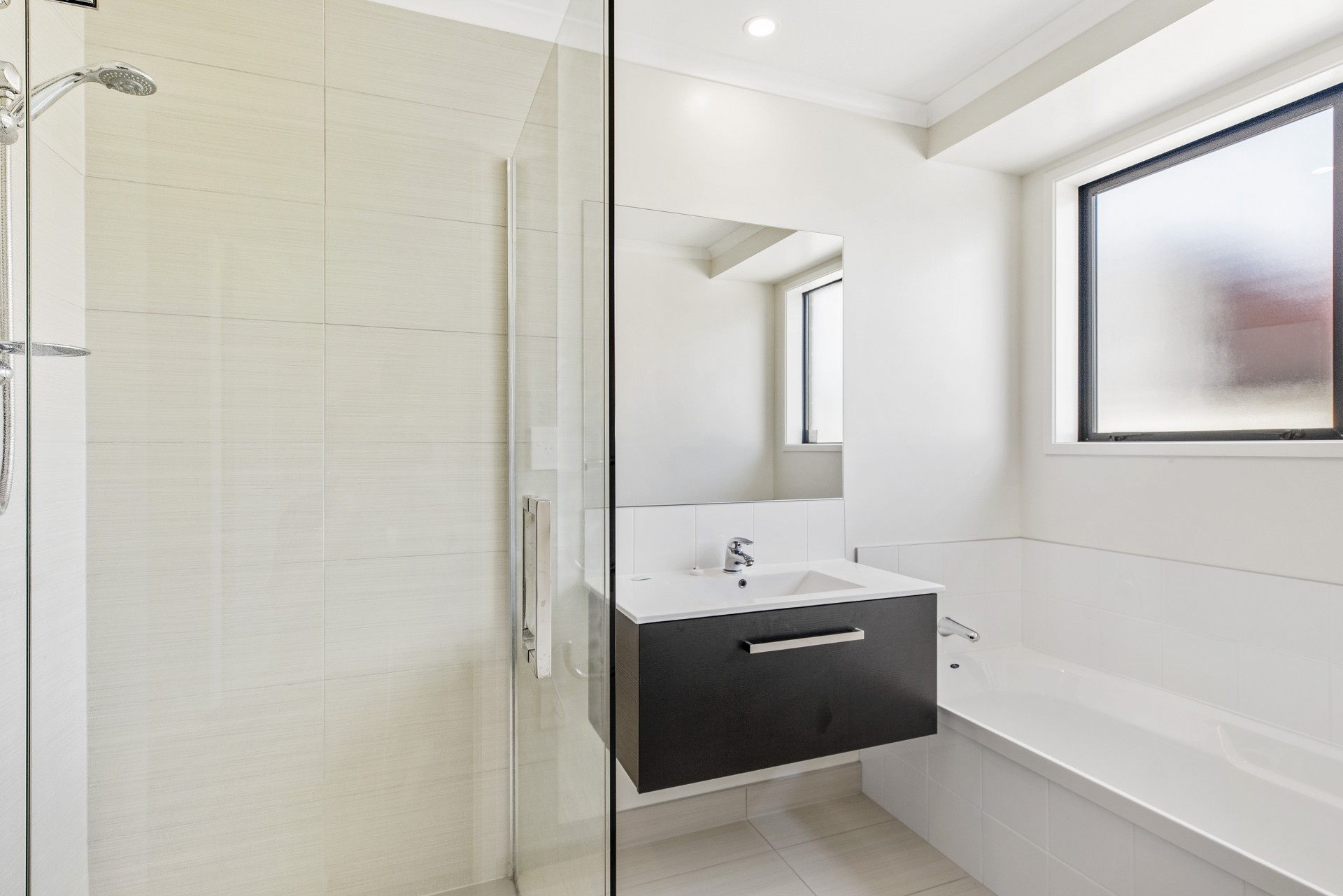 All four bedrooms are generous doubles with built-in storage, including the master with its own walk-in-robe, ensuite and access to the patio. Both of the bathrooms are modern, tiled with sleek fixtures and finishings. The ensuite has a large shower and the main bathroom has both a shower and separate, luxurious bathtub.