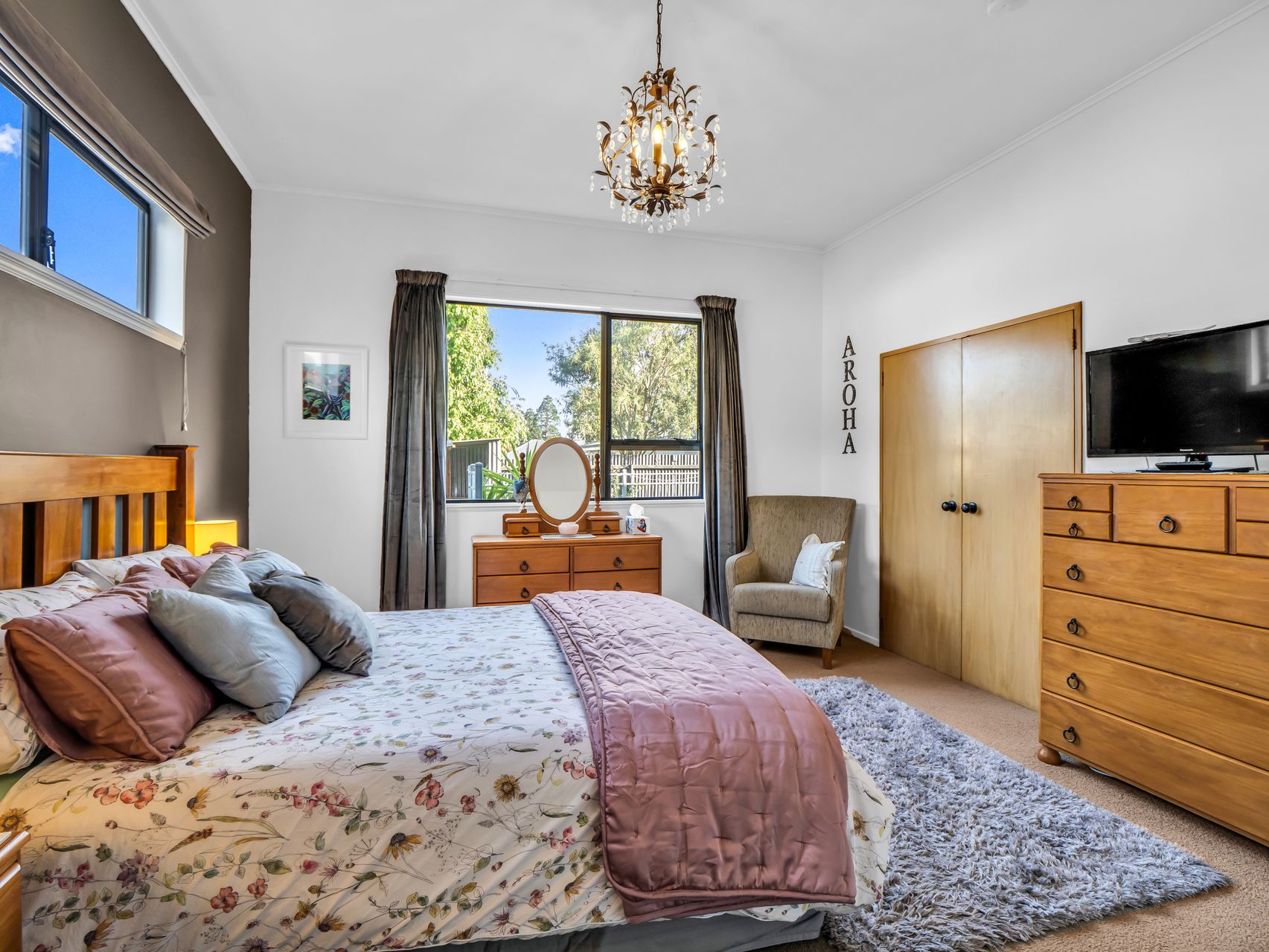 Outside, the covered deck is ideal for long lunches, weekend barbecues, or relaxed evenings under the trees. The lawn provides space for kids and pets, and established fruit trees, two sheds, and plenty of off-street parking add extra functionality.