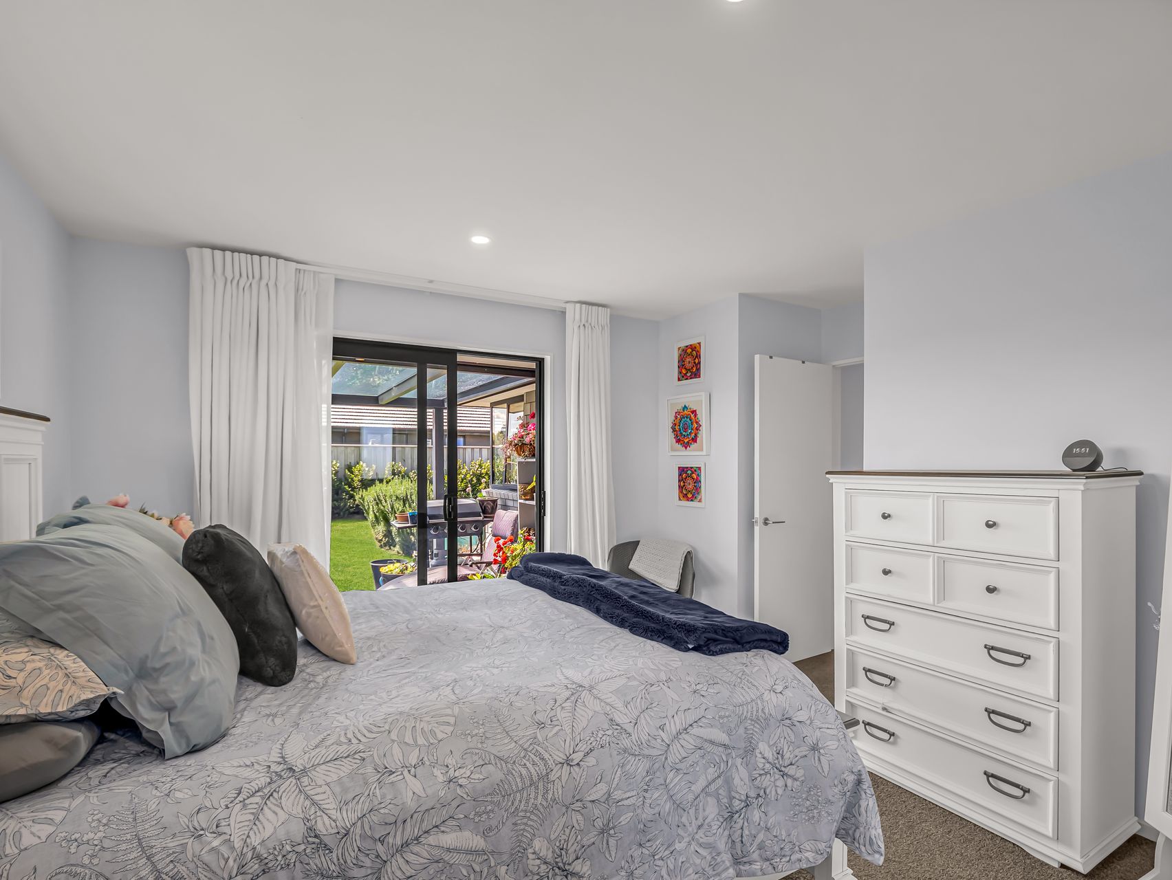 Three bedrooms are well positioned for comfort and privacy. The main bedroom enjoys its own ensuite, walk-in wardrobe and direct access outside. The remaining bedrooms are generous and flexible, ideal for family, guests, or working from home, supported by a contemporary family bathroom.