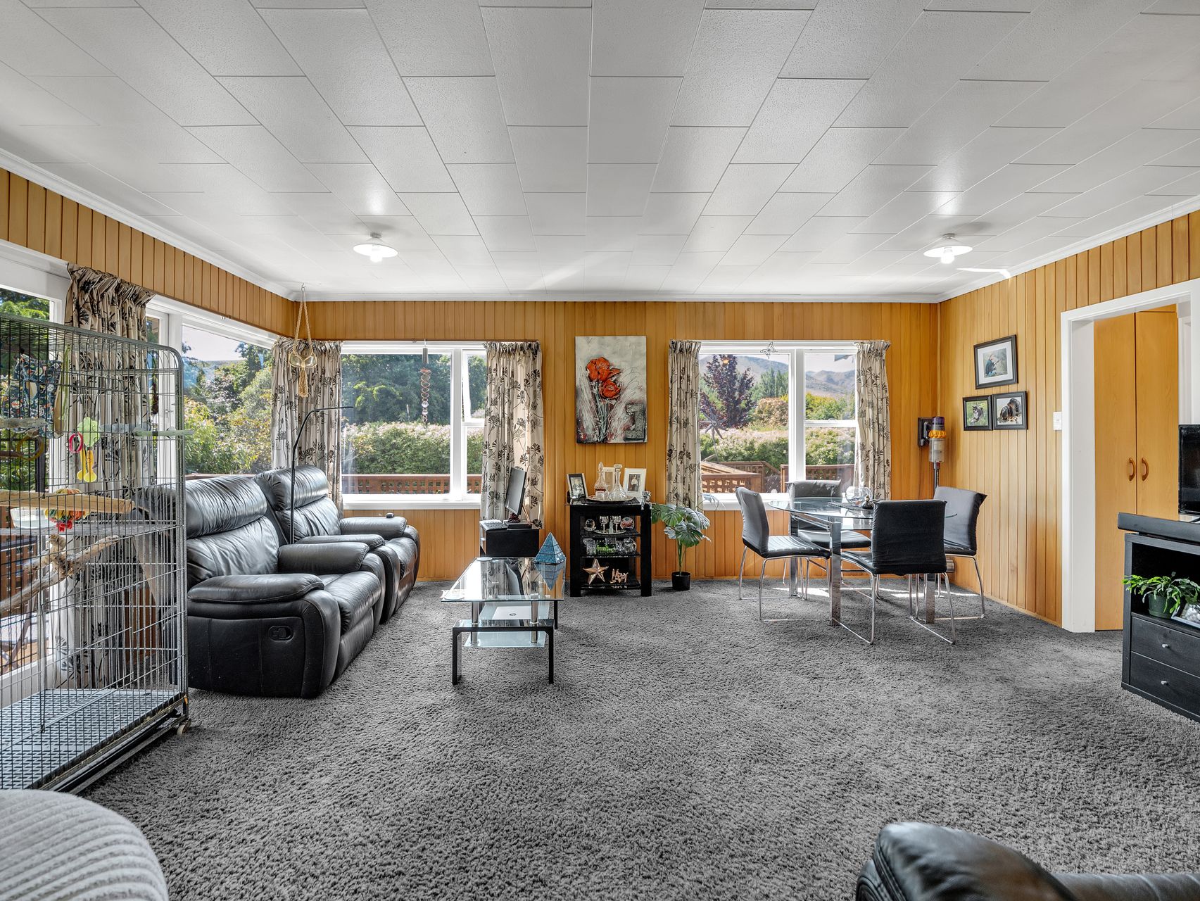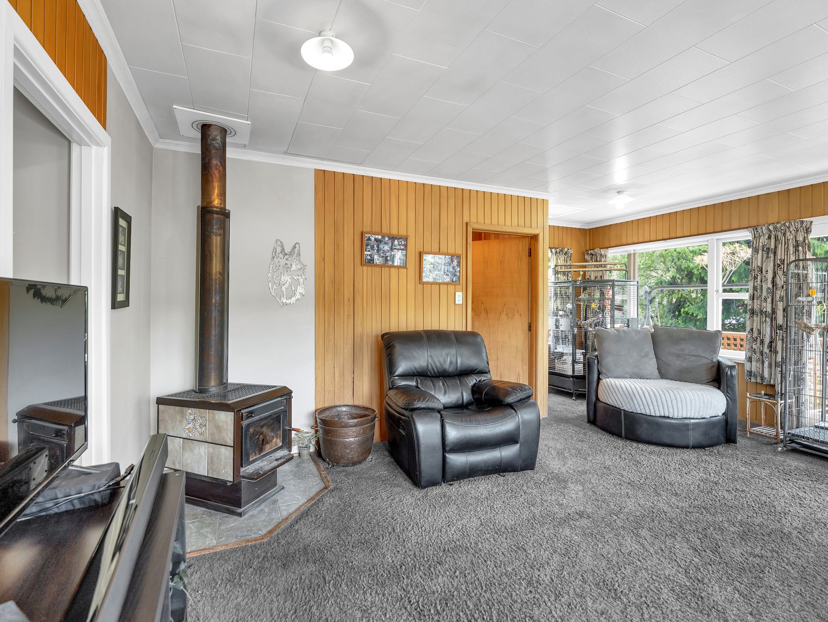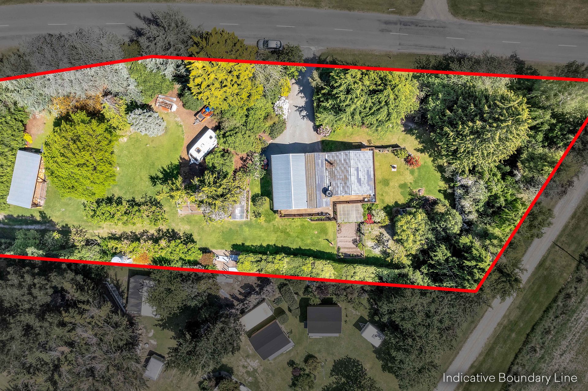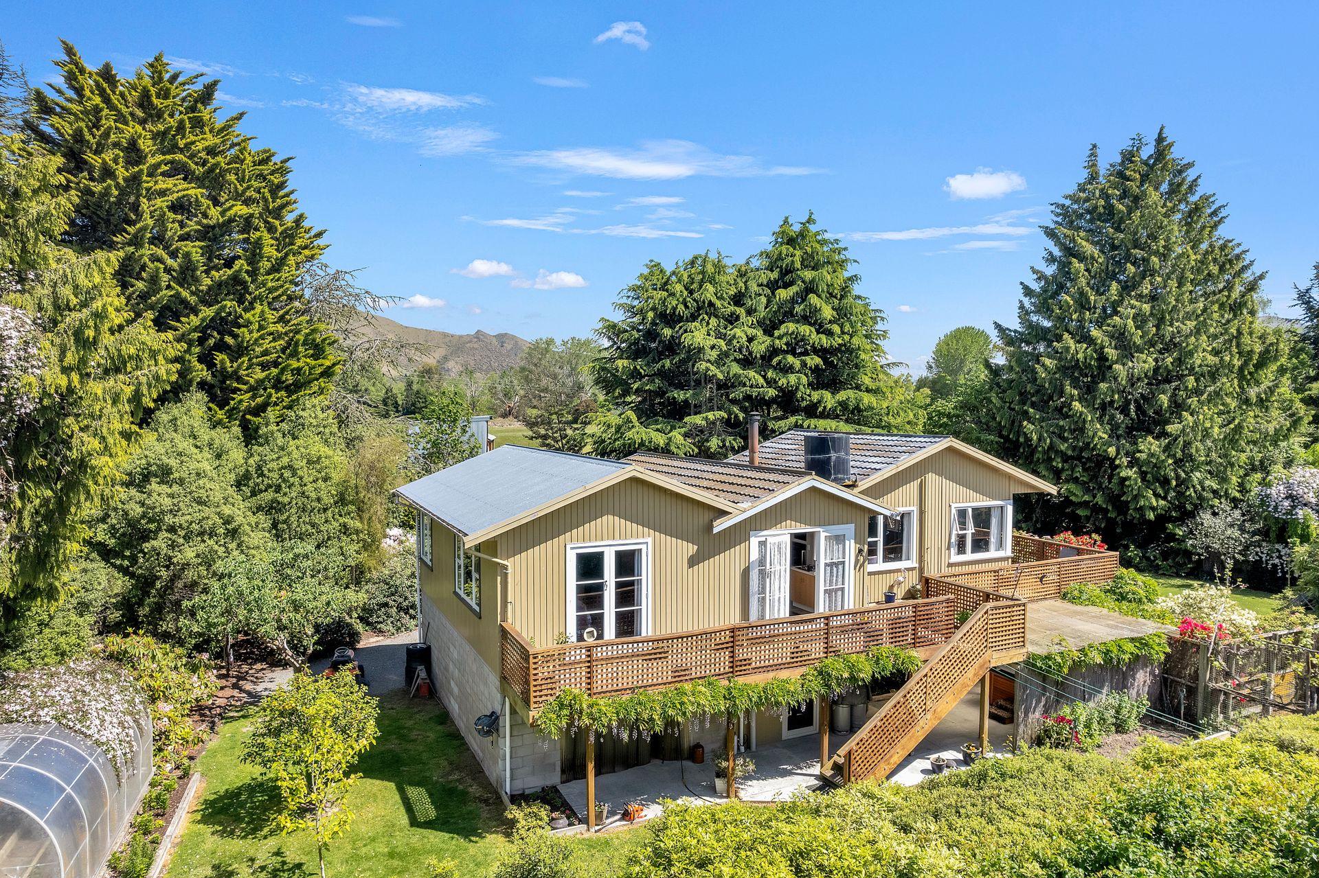 Outdoors, the timber deck wraps around the home, surrounded by vibrant planting and wide views. There’s room to dine, unwind or sit beneath the deck where a hot tub and swing seat create the ultimate evening retreat. Beyond the deck, raised vegetable beds, a woodshed and an aviary complete the picture of true lifestyle living. A gravel drive leads to a basement workshop with a convinient second toilet and two garages, ideal for storage or weekend projects.
