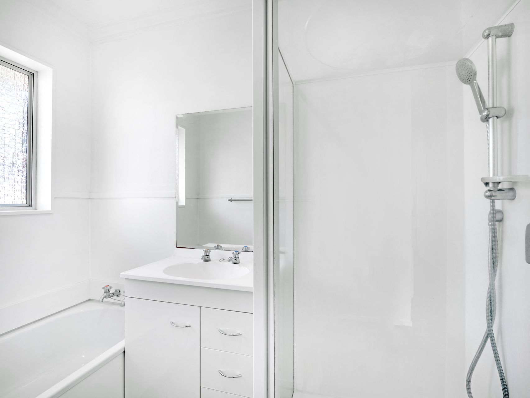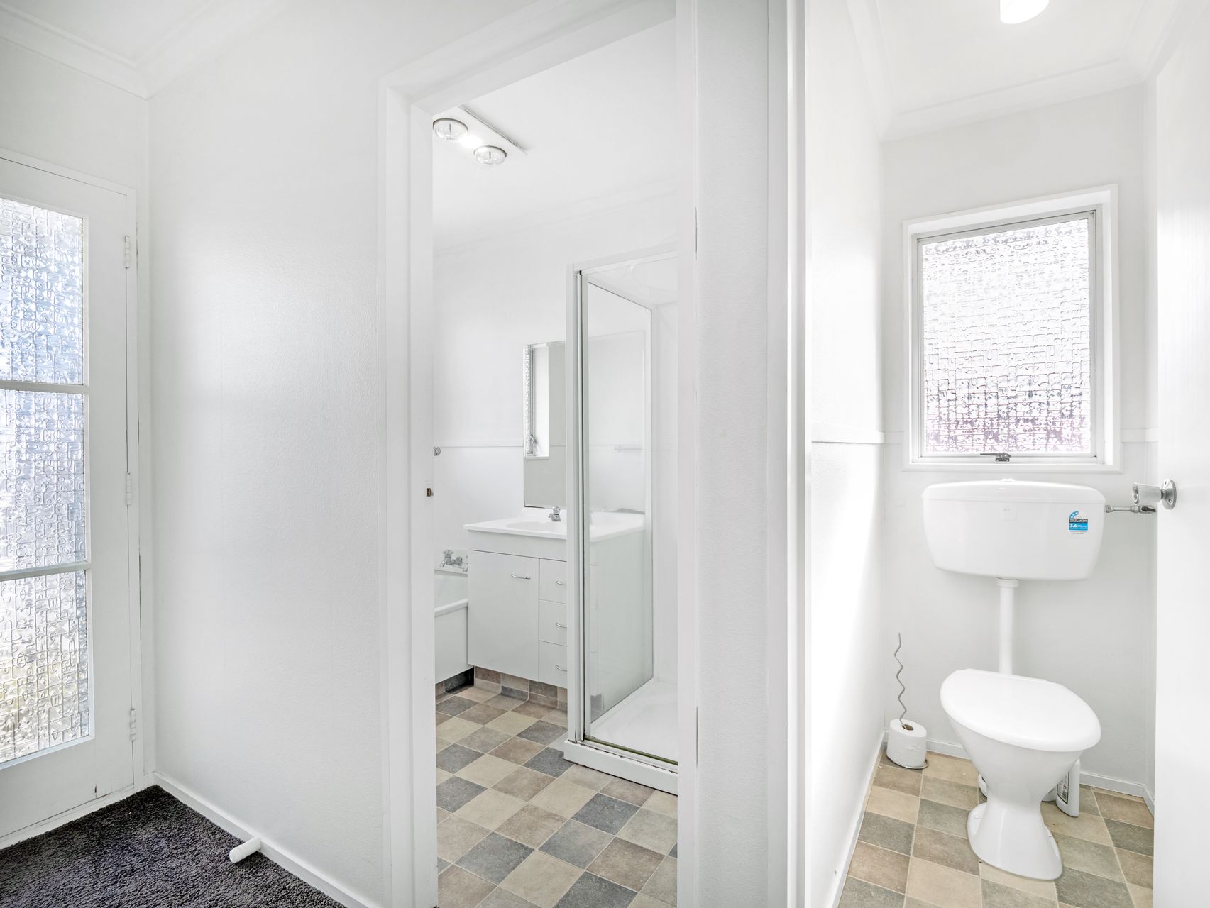 The bathroom is well appointed with a bath, shower, and vanity, plus the convenience of a separate toilet.