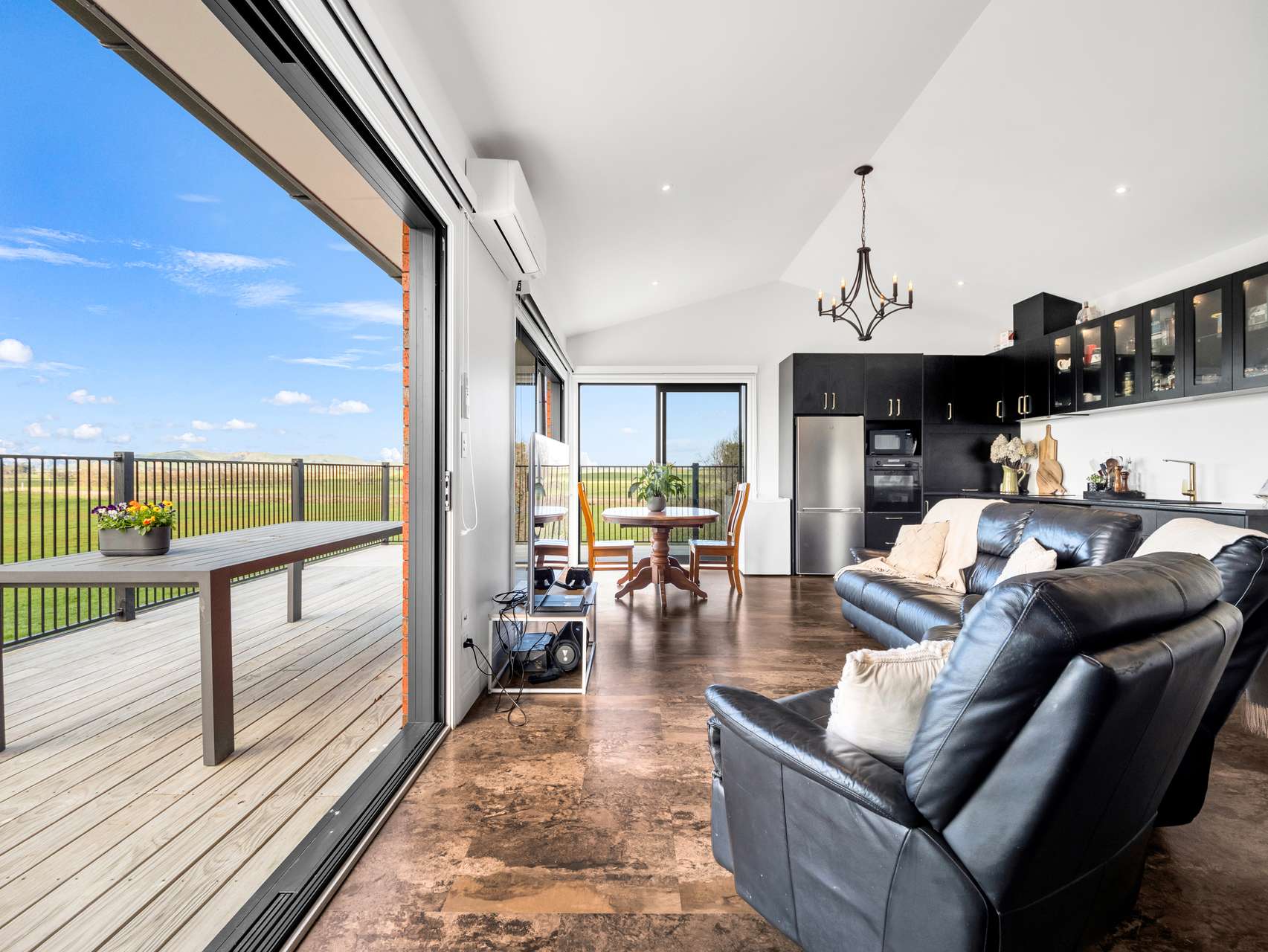 Upstairs continues the theme of space and versatility with: a large living area, three more bedrooms (two with walk-in wardrobes), a family bathroom with separate toilet and shower room, ducted heat pump heating and a sun-soaked deck with sweeping views of the countryside.
