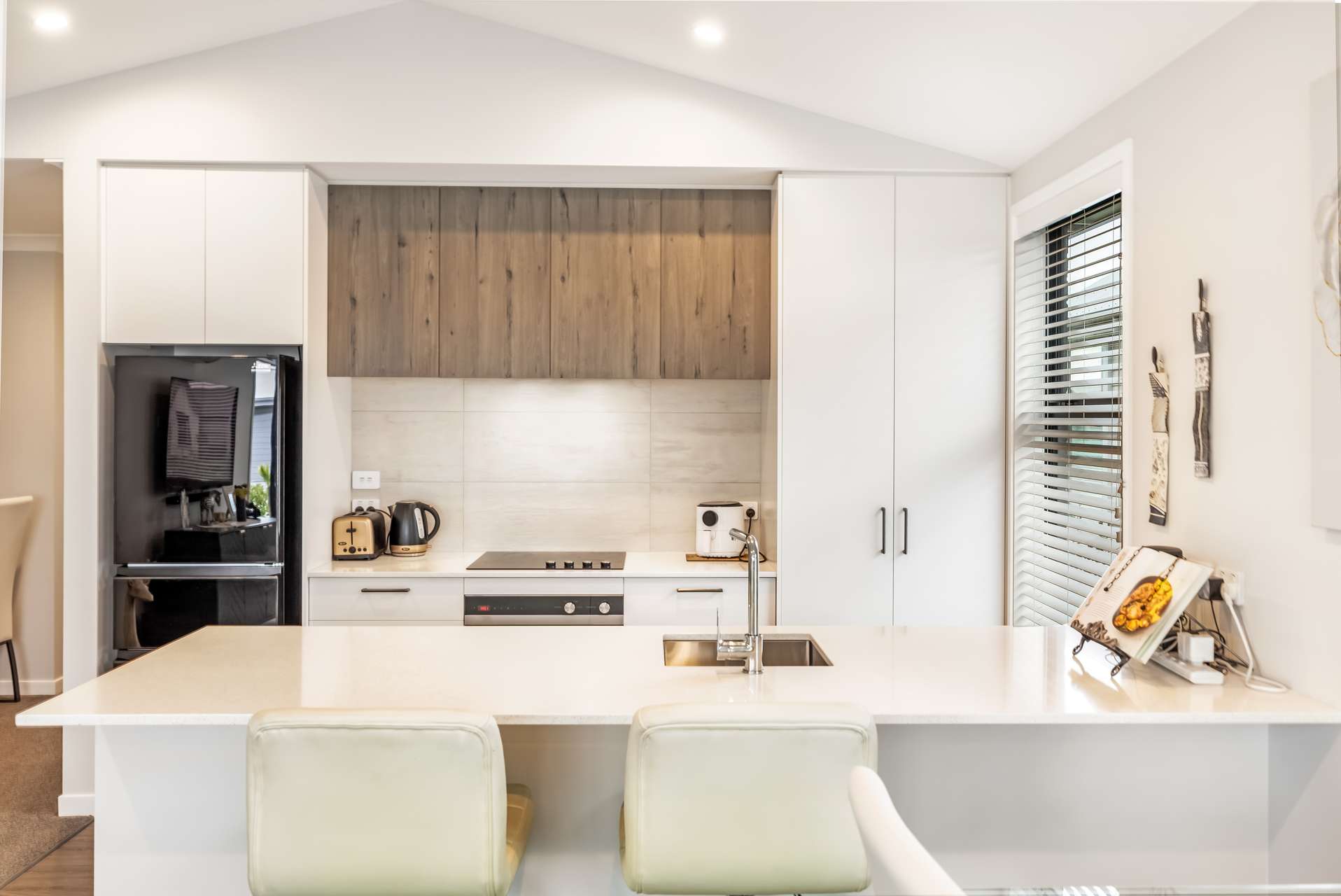 Beautifully designed with gorgeous raked ceilings, a light-filled open-plan living space and a heat pump for year round comfort. A modern kitchen, impeccably styled and incredibly functional offers quality appliances, a breakfast bar and sunny connection to the dining area,. A space designed to make cooking simple and enjoyable. A dedicated study nook gives you a place for hobbies or quiet moments with a good book.