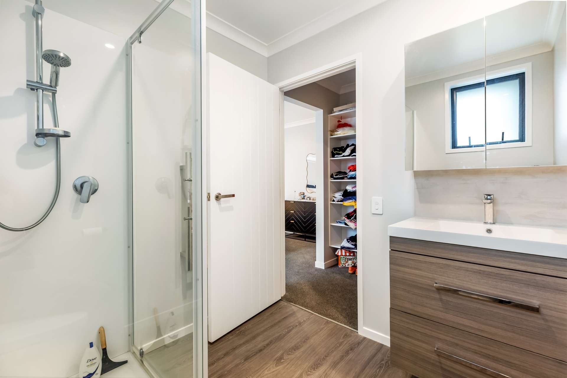 All three bedrooms are generous in size, with built-in storage. The master suite features a private ensuite and walk-in robe, while the main bathroom is sleek and well-appointed.