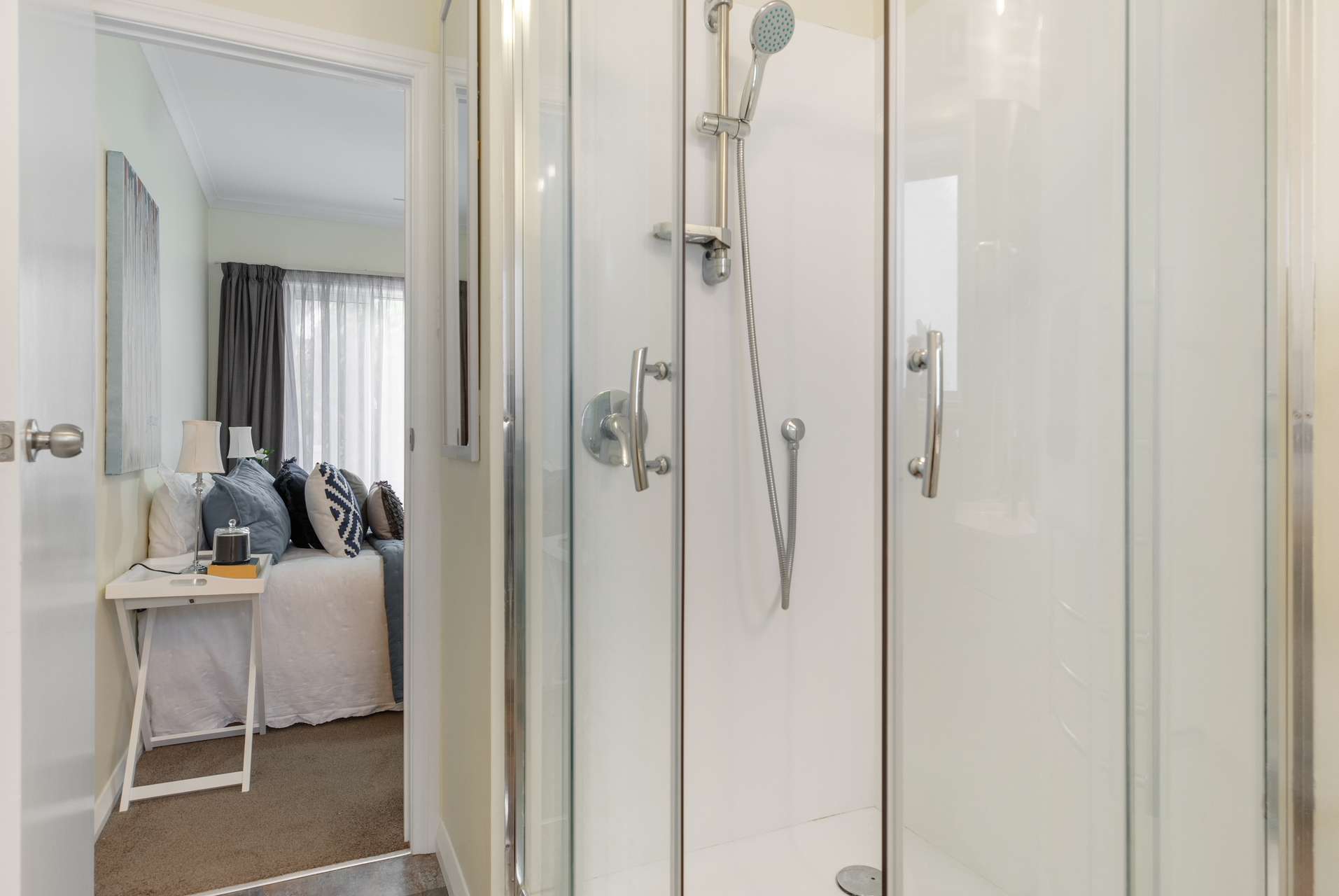 If you’re thinking about downsizing or buying your first home this spectacular unit is a must-see. It has a stylish apartment feel, but with lots of character, beautiful drapes, sheers and practical blinds, and a stunning bedroom too.