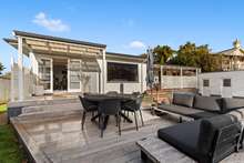 There are three bedrooms in total, all gorgeous family-friendly rooms that open directly out to the front patio which runs the length of the house. Sitting on a fabulous 1032 sqm (more or less) section, there is plenty of space for the kids or grandkids to play.