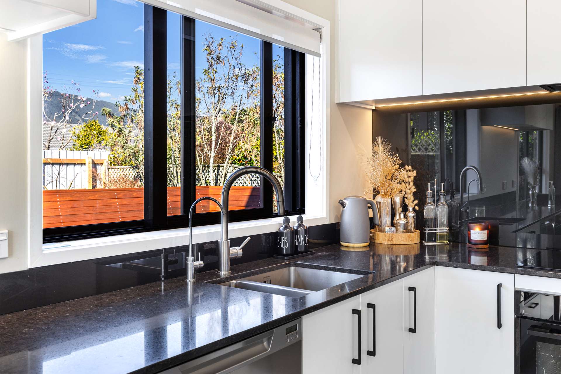 Outside, the new deck basks in the afternoon sun – perfect for BBQs, relaxed coffees, or evening drinks. The section is fully fenced for privacy, with established lemon and plum trees for seasonal produce. A double stand-alone garage provides secure parking and storage, supported by off-street space for visitors, trailers, or a boat, plus a recently built storage shed. New blinds also add a crisp finishing touch inside.