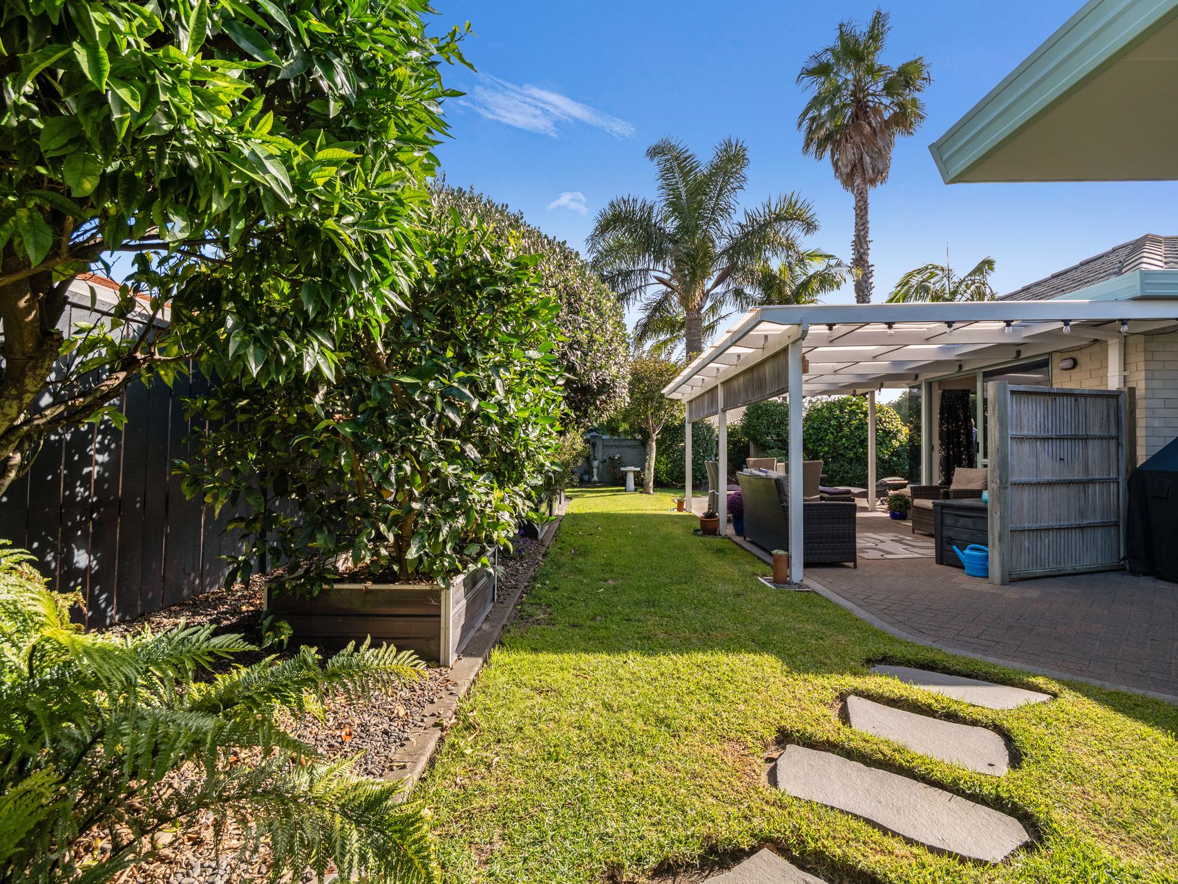 Garden lovers will enjoy the ample outdoor space for pottering and planting while those that would prefer relaxing with a cold beverage can do so with the alfresco dining options. Surround yourself with festoon lights and flickering candles and picture yourself in your own private garden party.