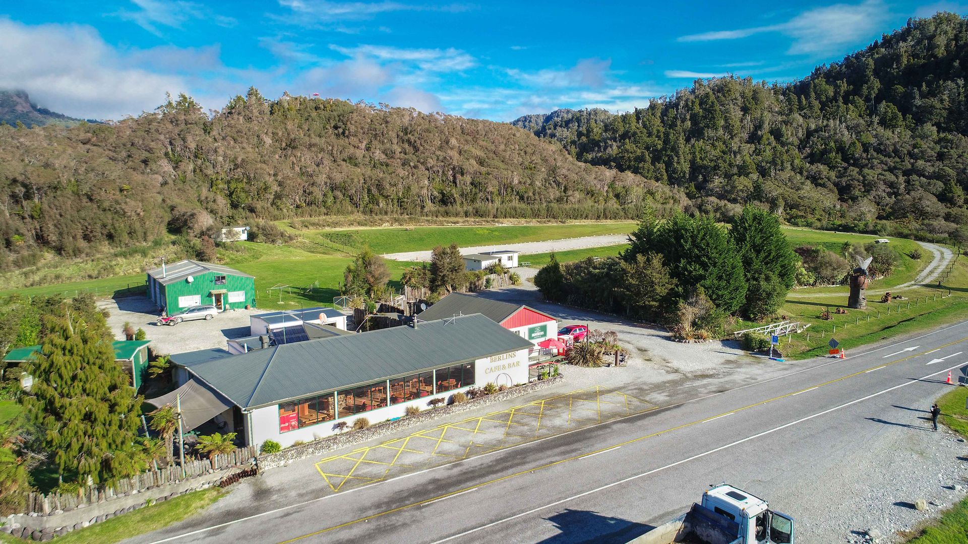 Berlin’s Café, Bar and Accommodation is ideally positioned on the main state highway, nestled within the stunning mountain ranges between Westport and Inangahua.