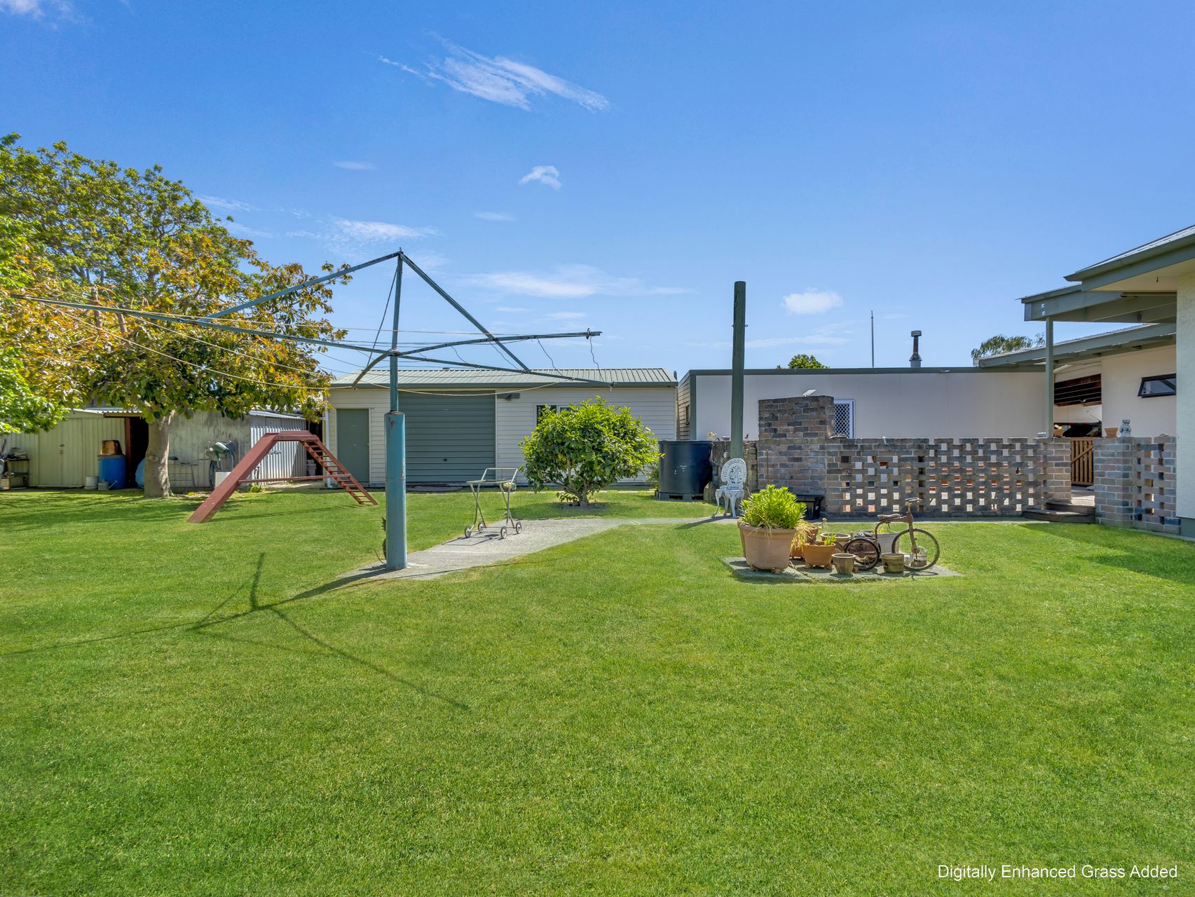 Outdoors, the expansive rear section is a standout. There’s room for children and pets to roam, established fruit trees for shade, and a raised vegetable garden for homegrown produce. Behind the three bay carport sits a versatile room, perfect as an entertainment space, hobby room or home business base. Beyond this are a double garage, large woodshed and three additional sheds, all easily accessed with excellent vehicle flow.