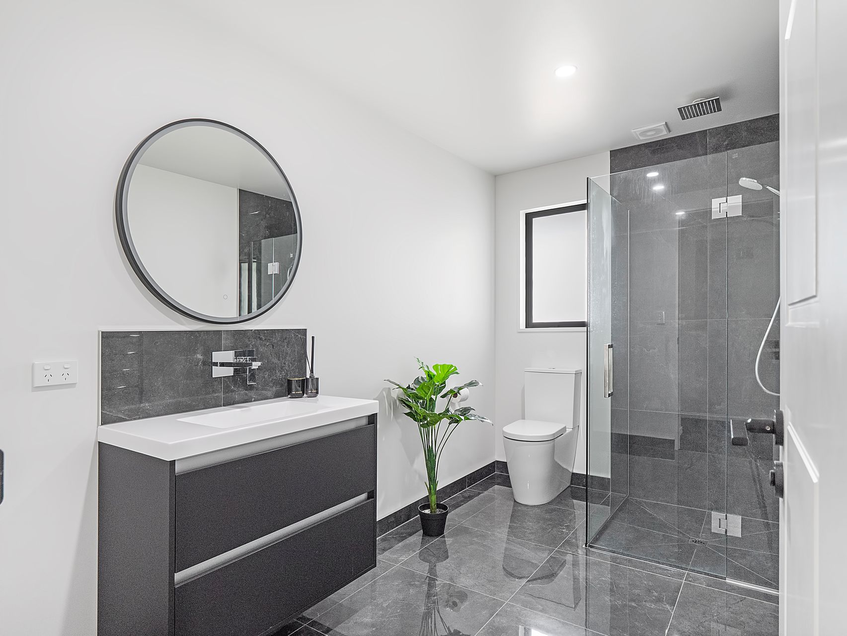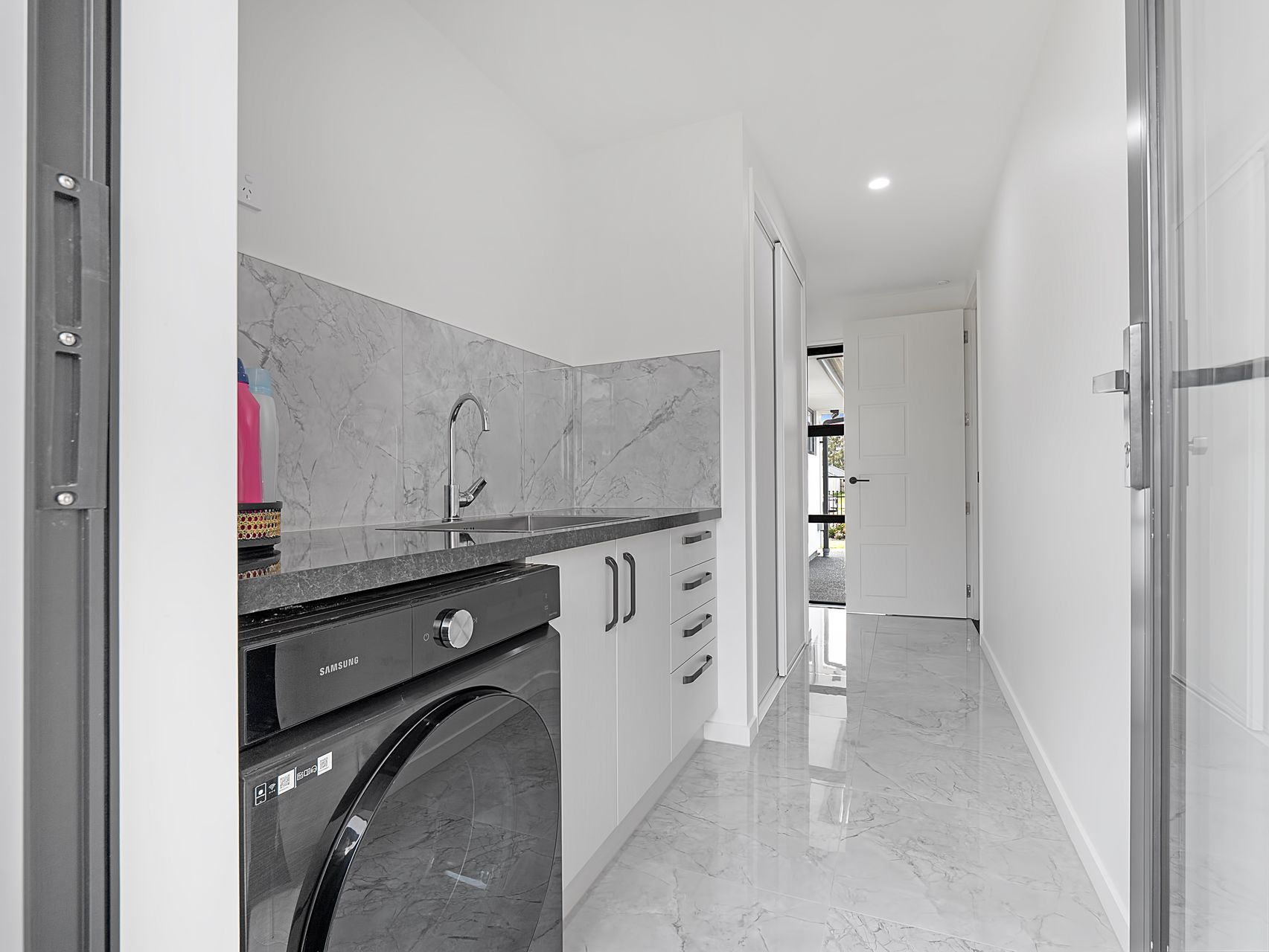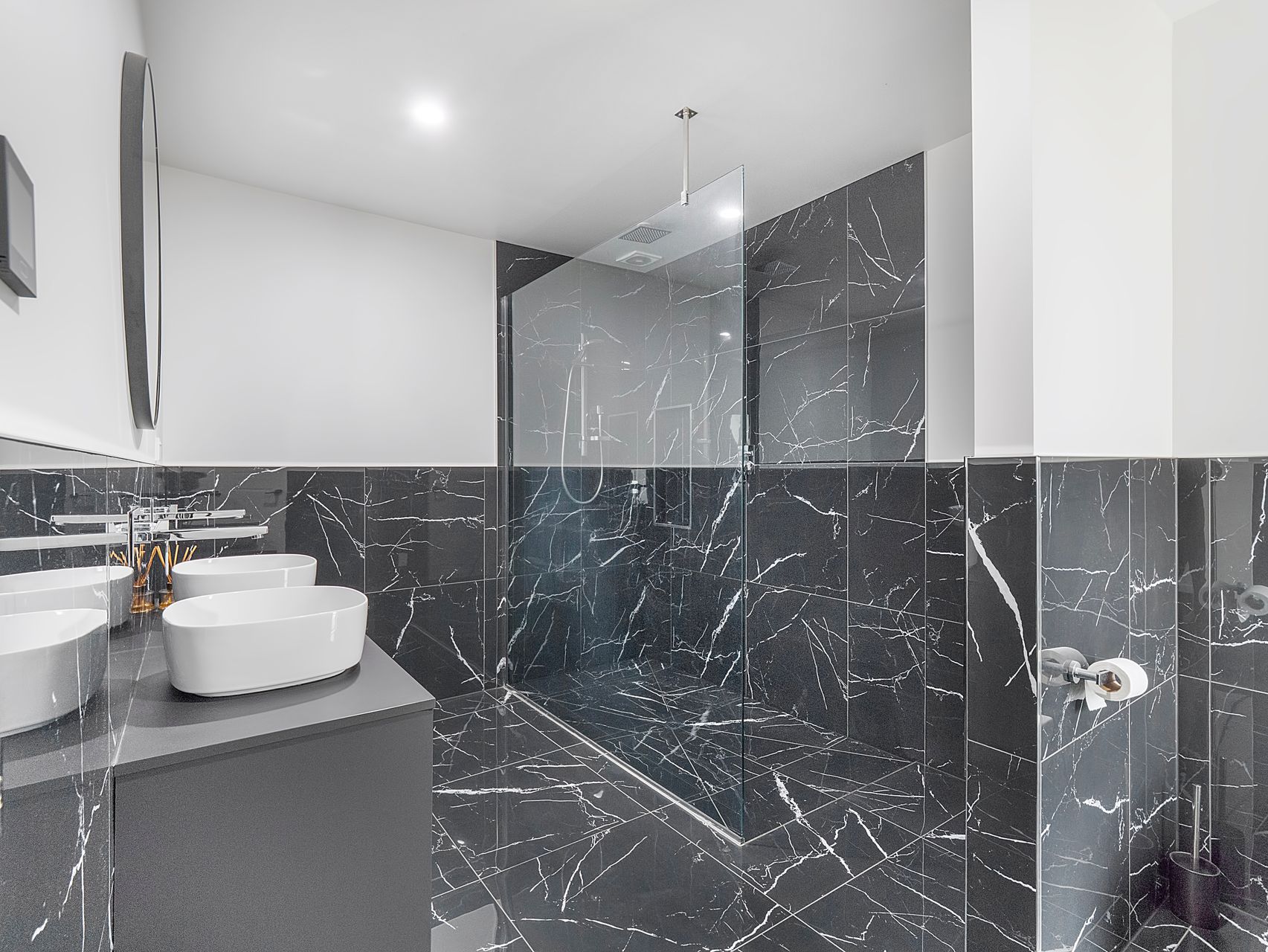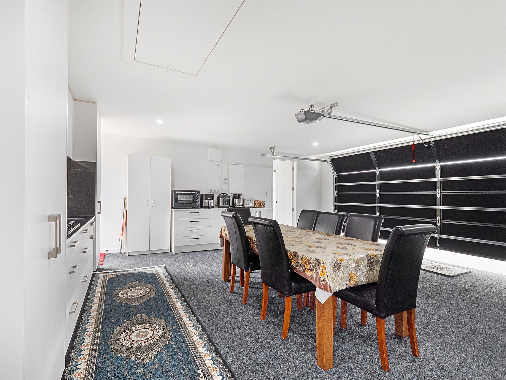 The master suite includes a room-sized walk-in wardrobe and a sleek ensuite with twin vanities and tiled finishes. Three further double bedrooms are serviced by two spacious family bathrooms, one with a separate WC - a simple but important detail for busy households. There’s also a dedicated study near the living hub, ideal for working from home, plus a separate laundry with outdoor access and excellent storage throughout. The carpeted internal access double garage rounds things out nicely, with the added feature of a second kitchen space.